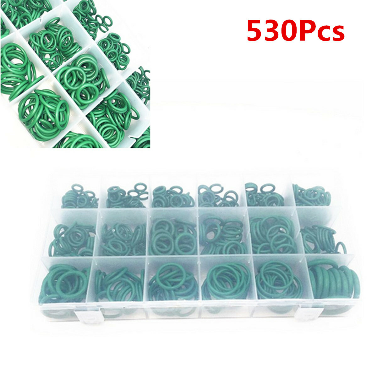 Product Description 530Pcs Universal Car A/C Air Conditioning Repair Rubber O-ring Seals Kit With Box Description: --100% brand new and high quality --Rubber seal ring can be used to between -45 degrees C and 165 degrees C. --Material: Rubber --Color: Green --Size : 18 sizes (as picture show) --Quantity: 1 set (530 pieces) Image is for your reference only Note: Due to the difference between different monitors, the picture may not reflect the actual color of the item. Please understand, Thank you. Payment Returns Contact Us Shipping We accept payment by PayPal only ! Payment should be completed within 5 days after buyer places the order,or else an unpaid case will be opened in order to cancel the transaction. If you can not pay in time, please contact us. e-check from PayPal will only be processed once the payment clears. All of the items will be shipped to buyer's EBAY address,please confirm your address on Ebay before you buy.Your order will be usually shipped out the same or next business days once the payment is made and cleared. 30-day Warranty with Exchange for defective, malfunctioned, incorrect or parts-missing items. Please notify us and return the item with all parts and accessories packed and marked "FOR EXCHANGE" within 14 days of receipt. If defective, malfunctioned or parts-missing items are no longer available, a refund may be issued. All returning postage costs will be the responsibility of the buyers under all circumstances. If you encounter any problems about anything, please feel free to contact us and we will do our best to assist you solve the issue. If you are not satisfied in anyway, please feel free to let us know and give us a second chance to correct it before you decide to leave any neutral or negative feedback. Please contact us through eBay link if you have any questions. We will reply you within 24- 48 hours. Please check you spam mail if no response for 48 hours. All items will be checked before packing. All items are new and of high quality. Item will be shipped within 1 business days upon receipt of payment, excluding weekends and public holidays. If to USA,we will ship your order by USPS,it will take about 8-12 working days to you,and you can track it on line. If to other country,we will ship your order by China Post or Singapore Registered Air Mail,it will take about 14-21 working days to you,you aslo can track it on line. Delivery time is about 14-28 business days and it may take up to 8 weeks . Payment We accept payment by PayPal only ! Payment should be completed within 7 days after buyer places the order,or else an unpaid case will be opened in order to cancel the transaction. If you can not pay in time, please contact us. eCHECK from PayPal will only be processed once the payment clears. All of the items will be shipped to buyer's EBAY address,please confirm your address on Ebay before you buy.Your order will be usually shipped out the same or next business days once the payment is made and cleared. Returns 30-day Warranty with Exchange for defective, malfunctioned, incorrect or parts-missing items. Please notify us and return the item with all parts and accessories packed and marked "FOR EXCHANGE" within 14 days of receipt. If defective, malfunctioned or parts-missing items are no longer available, a refund may be issued. All returning postage costs will be the responsibility of the buyers under all circumstances. Contact Us If you encounter any problems about anything, please feel free to contact us and we will do our best to assist you solve the issue. If you are not satisfied in anyway, please feel free to let us know and give us a second chance to correct it before you decide to leave any neutral or negative feedback. Please contact us through eBay link if you have any questions. We will reply you within 24- 48 hours. Please check you spam mail if no response for 48 hours. Shipping All items will be checked before packing. All items are new and of high quality. Item will be shipped within 1 business days upon receipt of payment, excluding weekends and public holidays. If to USA,we will ship your order by USPS,it will take about 7-10 working days to you,and you can track it on line. If to other country,we will ship your order by China Post or Singapore Registered Air Mail,it will take about 14-21 working days to you,you aslo can track it on line. Delivery time is about 14-28 business days and it may take up to 8 weeks . Welcome to our Store ~