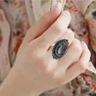 $ 7.92Blue Oval Gemstone With White Gemstone Petals Silver Band Ring Never Worn