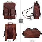 Mens Vintage Genuine Leather Satchel Laptop Backpack Rucksack Messenger Bag This product data sheet is originally written in English. Material- Real Goat hide ( sustained ) Bag Size- 13 x 17 x 6'' XX Large Front side 2 pockets and 2 pocket on side. Shoulder belt length- 70 inches long which convert into messenger and backpack also Total 3 compartments inside with green color strong canvas lining. Handle on top. Real Brass metal accessories used in this Bag. Made by professional and experienced artisans from Rajasthan. Treated by natural ingredients. Natural leather smell will go away within few days from the usage of this bag. Eco friendly and weather resistant. Made by experienced and talented Artisians from Rajasthan ( Jaipur ).