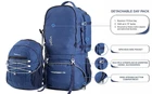 Rucksack and Backpack for Travelling with Detachable Bag 2700 B093T6NXNZ DETACHABLE DAY PACK Easily detachable 15 litre detachable day pack with a laptop sleeve that can hold a 15" laptop. A front pocket with elastic cords and sleek design makes this the most handy day pack. The 55 Litre rucksack is 40+15 Litres whereas the 70 Litre one is 55+15 Litres