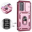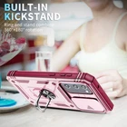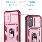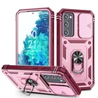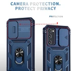 Compatible With: For Samsung Galaxy S20 FE For Samsung Galaxy S20 FE 5G Features: ▪ High Quality: The frame is made of flexible TPU silica gel which avoids your phone falling from high place. The back side of the case is made of hard PC that provides scratch protection. ▪ with Side Camera Cover: Slide cover design for protecting and hide the camera perfectly. ▪ Built-in kickstand: 360 kickstand Ring Stand offers convenient hands-free viewing from either landscape or portrait two different angles; ▪ Magnetic Car Mount: Built-in metal magnetic sheet which can be directly adsorbed stably to the magnetic car mount holder. (Not includes the magnetic car mount holder.) ▪ Precise Cutouts: Precise design, Easy access to all ports, buttons, and features. ▪ Raised edges design ensures extra protection for the screen and camera. Package: 1x Shockproof Ring Stand Cover with Slide Camera Case
