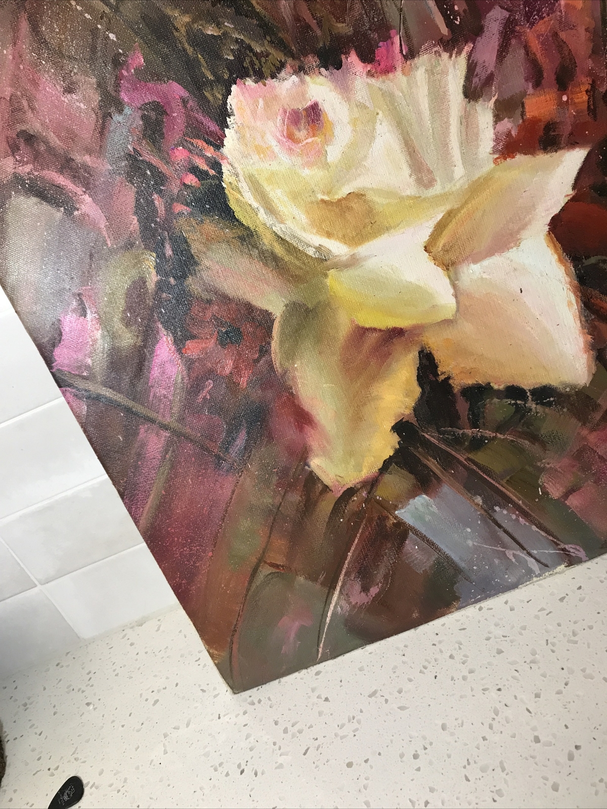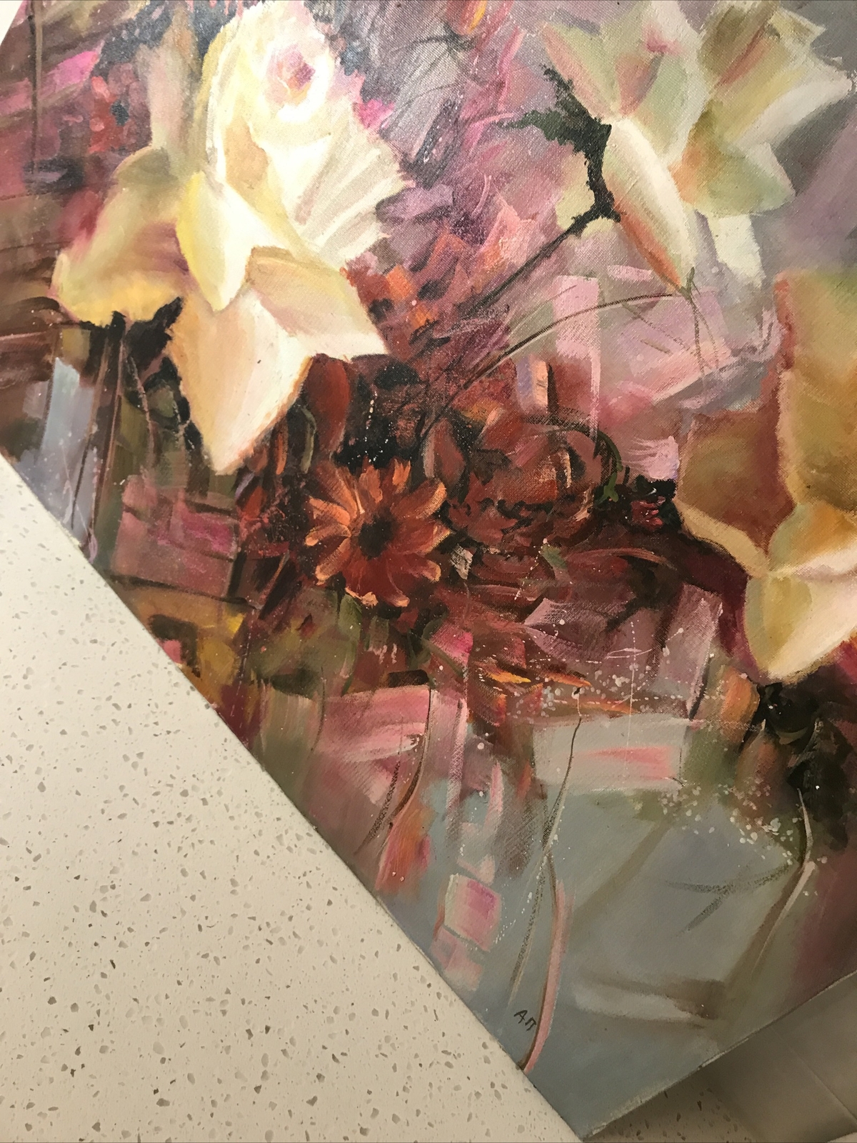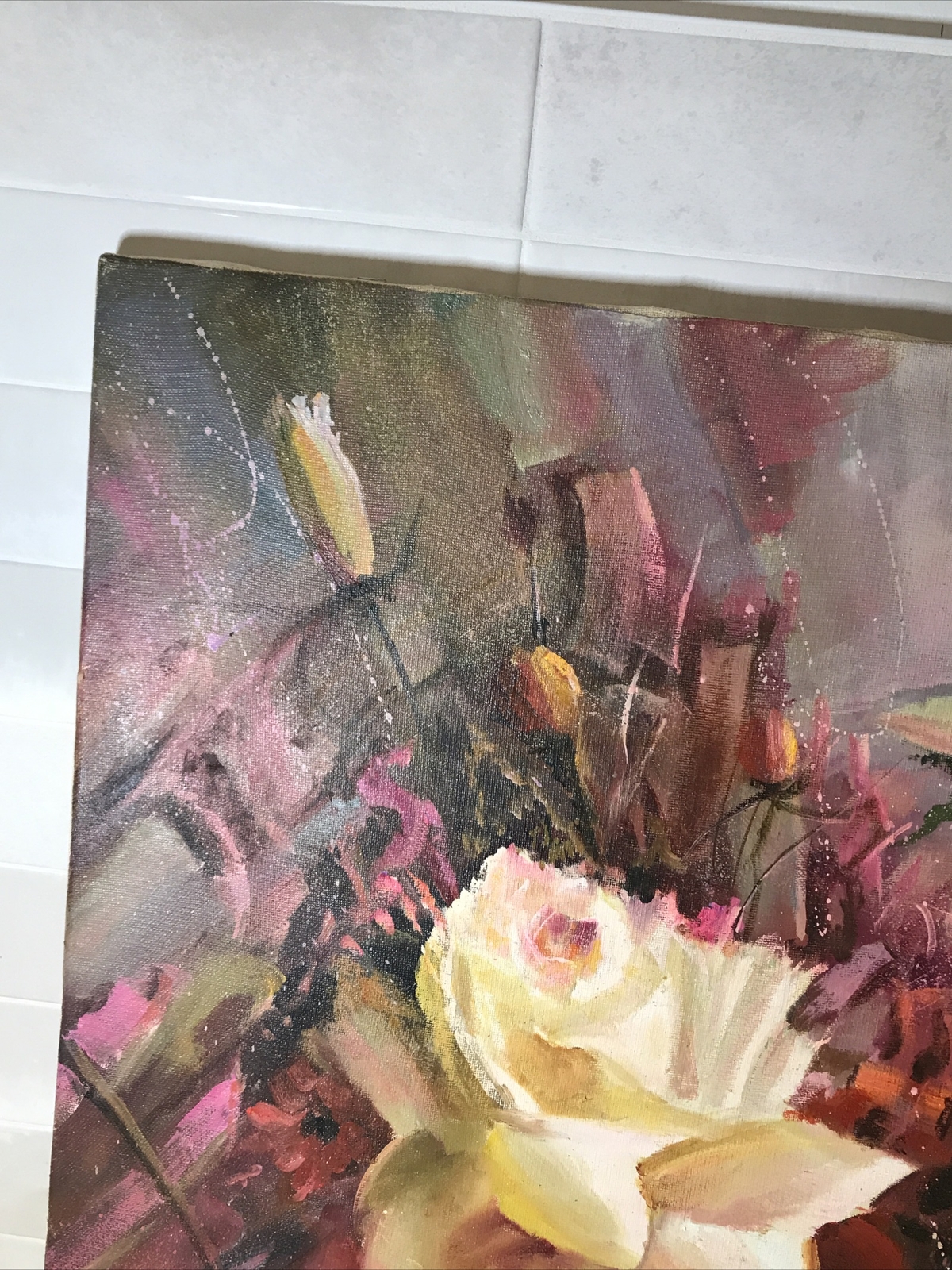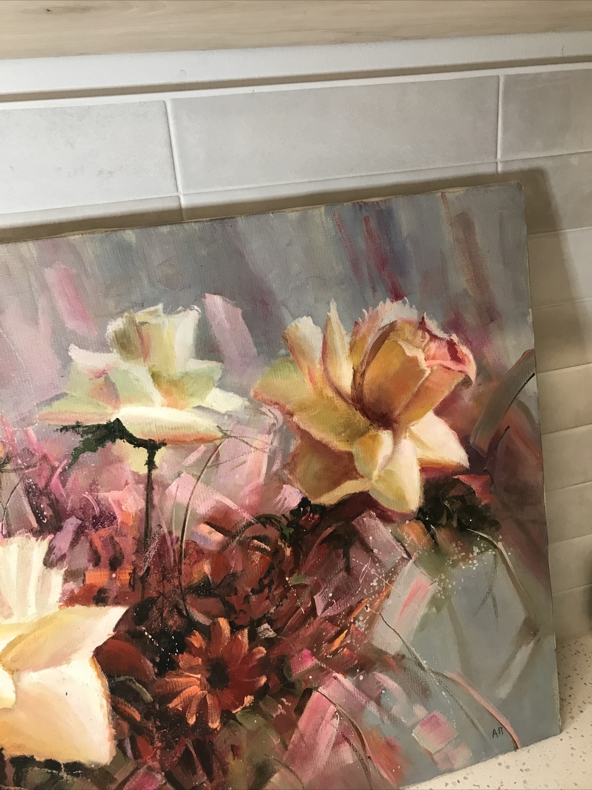 Russian Artist Alexander "A Pede.” ORIGINAL ‘FANTASY” Oil Canvas Painting 31”x24” FLOWERS. Condition is Used. Shipped with USPS Ground Advantage.
