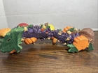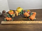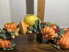 The product is a decorative Votive Candle Holder in the shape of an arch, suitable for holding votive candles. It features intricate designs of pumpkin, squash, acorn, and mushroom, adding a festive touch to any space. With dimensions of 11.5" in length and 4.25" in height, this candle holder is a stylish and functional addition to any home decor. Perfect for creating a warm and inviting atmosphere during the fall season.