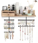 Innovative Improved Jewelry Organizer:Totally 6 rods,allowing you freely place earrings,necklaces,bracelets,watches,eye glasses etc..Large capacity earring organizer:58 slots instead of holes,directly place and fetch;Necklace organizer:branched rods instead of single rod,avoid tangling,directly get the piece you want;Ring&brooches organizer:wood drawer,lined with soft fine linen,divided compartment for rings and brooches;Ample space shelf for storing cosmetic,perfume bottles,display decor items Wall Mounted Jewelry Organizer: Jewelry wall organizer is made of rustic wood with carbonized finish, creating a rustic and stylish look that complements a variety of decors. No tangled necklaces, no missing earrings, easily pick the right accessories for the day Large Capacity Jewelry Organizer: Wooden storage drawer for your percious ring and brooches, a shelf for perfumes, watches and eye glasses, 58 earring slots & 6 bracelet rod for storing all shapes and sizes of jewelry including rings, necklaces, bracelets, sets, large hoop earrings. It's time to show off your collection, outstanding hardwood made organizer for hanging all jewelry, perfect for storing your favorite jewelry Excellent Gift For Women: Every female have their own jewelry,and jewelry organizer is a necessary and lovely gift. This exquisite jewelry organizer is absolute a ideal gift for birthday, Christmas, New Year, Valentine's Day, anniversary and the perfect gift for mom, daughter, wife, girlfriend and female friend Enjoy Easy Setup: Wall mounting screws and anchors are included for easy quick installation, all you need to do is mount it on the wall with installed mounting brackets. The drawer lined with fine linen to keep your jewelry from scratching, plenty of divided space and organizers, greatly save your space, you can fit on your bedroom, closet, or bathroom wall. Get this jewelry organizer and say goodbye to the lost earrings and tangled necklaces 100% SATISFACTION SERVICE: Storing your makeup or daily accessories and protect your rings or earrings from scratches with this Jewelry Wall Organizer. Any questions about our product, please reach out to us
