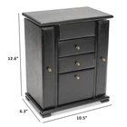 Jewelry Organizer Box with Mirror - Jewelry Holder for Store Necklace Bracelet Earring Ring and BroochMaybe you always be annoyed about can't find jewelry.Maybe you always be annoyed about mess of jewelry.Maybe you always be annoyed about losing jewelry.This jewelry box can go a long way in keeping your collection organized and in tip-top shape~!Rings Wave HolderLinen wave ring holder could place about 24 rings. Drop-down structure is easy to store your favorite rings.Necklace Holder Door2 side door equipped 8 bronze hooks and wood tray, can hang your necklace well and protect it from scratches.Inside MirrorThe top of the jewelry box is an 8.8 x 4.7 inch mirror. It could help you to wear and match your jewelry. DrawerEach drawer has a different layout. Earings, bracelets, watches and other accessories could be assigned to different place.Solid WoodThe rustic solid wood material with torched finish gives it a classic feel. Fit to the farmhouse style room.Ideal GiftThis jewelry box must be a wonderful gift for who you cherish, it will be the most exquisite and favorite gift she has ever received. 💝Collect All Beauty: Every lady has the experience of losing jewelry, do you? This large jewelry box is finish with vintage black color and double doors—but it also totes everything you need to store a modern jewelry collection. 4 Layer different compartments store different jewelry, such as earrings, bangles, rings and other accessories. 2 side doors of jewelry boxes for hanging necklaces and bracelets. 💝Elegant Farmhouse Design: If you are a lover of nature and farmhouse, this jewelry boxes for women will be a awesome gift for yourself. Solid wood feature a rustic charm after fired. It will be the unique focus while decorating your jewelry with rustic beauty! 💝All-Sided Protection: 100% natural real wood on the outside, fine linen lining on the inside, combine with 12 years of wood processing technology give your valuables quality protection from scratches and tarnishes. 💝Ideal Gift for Loved One: Regardless of occasion, age, relationship, give this jewlery box to those you want to impress and you’ll see their dazzling smile. 💝100% Satisfaction Service: The wood jewelry boxes size: 12.6x10.4*6.3inch. 90 DAYS “NOT ARTIFICIAL DAMAGE” FREE REPLACEMENT GUARANTEE. If there is any problem with our product, don’t hesitate to contact us as soon as possible. We will do our best to satisfy you!