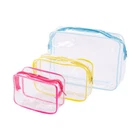 Feature: 100% Brand new and high quality. Transparent PVC travel bag suit, very suitable for vacation travel, makeup, toiletries, neat handbags and so on. Waterproof and easy to clean. Perfectly store your belongings. Specification: Material: PVC Color: black,rose red,yellow, blue Large Size:25*18*6cm Medium Size: 18*12*6cm Small Size: 15*10.5*7cm Package includes: 1pc wash bag