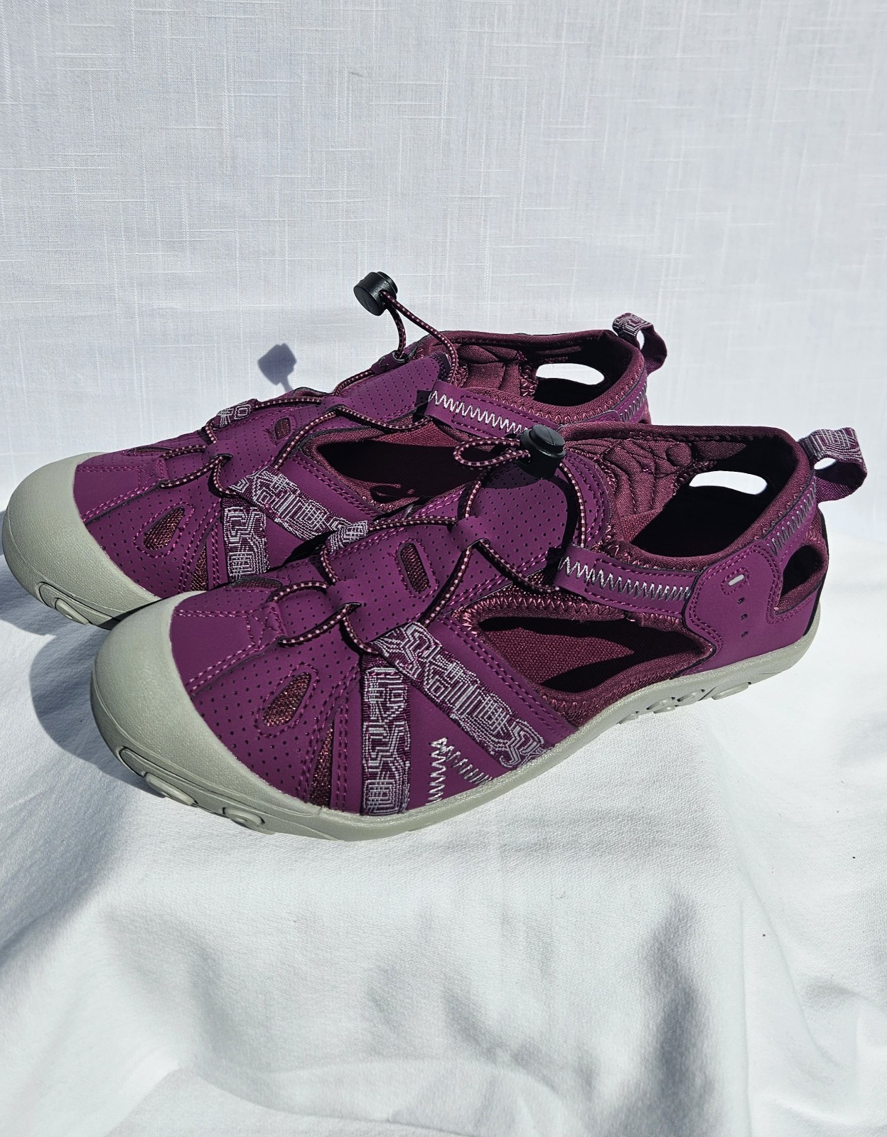 Step into comfort with SAGUARO Brand Walking Sandals in a vibrant purple shade that adds a pop of color to any outfit. Designed for the woman on the go, these size US 8 / EU 39 Fisherman-style sandals offer a blend of functionality and style. The adjustable straps ensure a secure and personalized fit, while the breathable fabric upper keeps your feet cool and comfortable. These sandals are engineered with performance in mind, featuring a cushioned insole that conforms to your foot's shape and a slip-resistant, waterproof design for versatile wear. The lightweight construction and additional comfort features make them an ideal choice for those who value both looks and practicality.