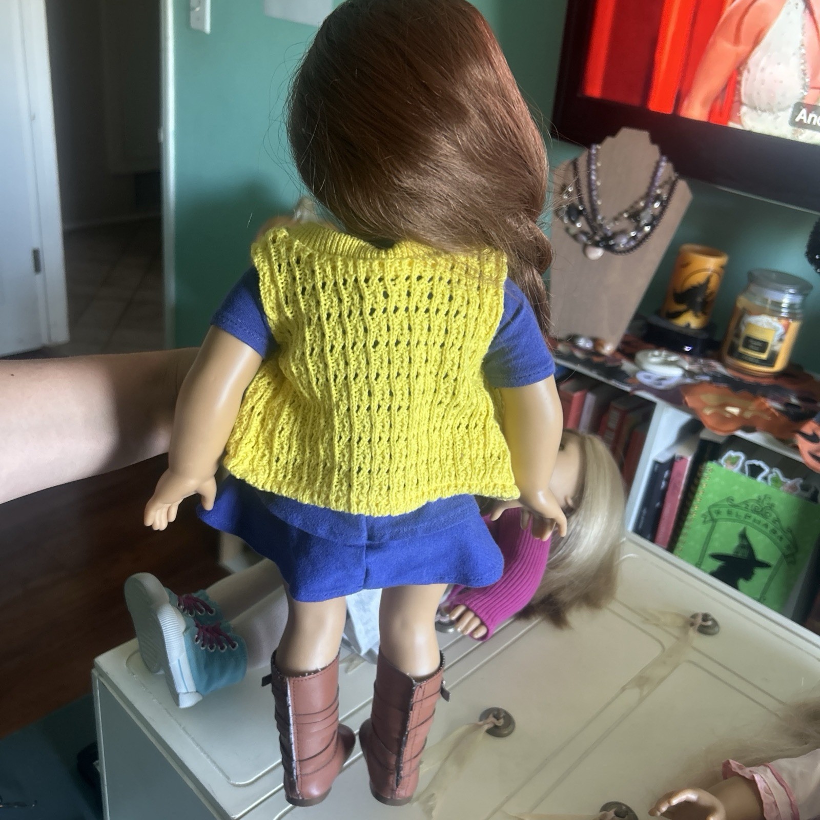 SAIGE GOTY American Girl Doll in Meet Outfit + Book + 3 BONUS Outfits (Absolutely ZERO stains or imperfections!!!!) : - Julie’s Yellow Vest and TWO pairs of her floral bell bottoms -Grace’s “Paris” top and matching purple skirt - Leah’s Rainforest Hike top and pants - extra meet outfit boot included !