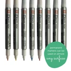 Identi-Pen is a multi-purpose pen that marks on almost any surface. The dual point IDenti-pen is two, permanent sharp-pointed marking pens in one: a tough fiber nib tip, fine-point bullet nib on one end and an extra fine plastic tip for details on the other. Use this pen on paper products and nonporous surfaces such as metal, glass, tools, sporting goods, test tubes, photographs, plastics, vinyl, wood products, and labels. IDenti-Pen ink is permanent, waterproof, low odor and built for heavy use. The alcohol solvent, dye-stuff colorant ink will mark on nearly any surface including slick PVC and poly-propylene sheet protectors. Note: Alcohol based cleaners will remove ink from most non-porous surfaces. Not recommended for use on fabrics intended to be washed. To be human is to be uniquely creative. We have a drive to create—new ideas, stories, products, art, and more. While technology will change the way we live, only we as humans have the particular ability to imagine and unlock possibility. At Sakura of America, we foster this incomparable human capability to think, dream, experiment, and connect. We know everyone is capable of creativity. This trait is within everyone, not just select people. Whether you are using our products for artwork, expression, problem solving, storytelling, or organization, creativity is at the core—allowing us to connect with ourselves and with others. We believe if you foster your creative abilities, you can reach your full potential. We encourage people to take a moment to explore how creativity unlocks new perspectives, self discovery, and human connection. Multi-Purpose Pen for Almost Any Surface: Use these permanent markers for paper, metal, glass, tools, sporting goods, & more Dual-Point Nibs: These markers have two sides, a fine-point bullet nib on one end and an extra fine plastic tip for details on the other Waterproof Ink: Pen ink is waterproof and permanent when dry Low Odor and Non-Toxic: These alcohol markers are low odor and meet ACMI non-toxicity standards High-Quality, Every Time: Our Japanese quality Sakura pens deliver professional results