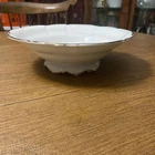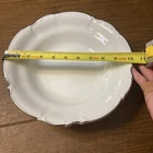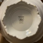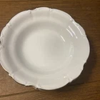 This SALADMASTER WEDDING BAND Footed Round Veggie Bowl is a stunning addition to any table setting. With a round shape and 10 1/4-inch size, it's perfect for serving vegetables or other dishes. The bowl is made of high-quality porcelain, bone china, stoneware, and ceramic materials, ensuring durability and long-lasting use. The white color and beautiful wedding band pattern add elegance to any meal. This round bowl is ideal for anyone who loves to entertain guests or loves to cook. It's perfect for use at weddings, parties, or family dinners. The bowl is in great shape, ready to be used for your next event.