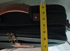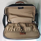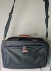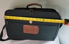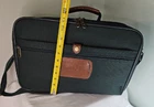 SAMSONITE 17" Carry On Luggage Overnight Travel Bag Dark Green Canvas with Brown Leather Handles and brass colored zippers. Measurements: 17 inches long, 6 inches wide, 11 inches in height. This bag is in good preowned condition. It does have some pilling (shown in the last photo). One of the inside zippered areas has some light stains. (Shown in photo 8). Look at all photos for detailed condition. Reach out if you have any questions. Thank you