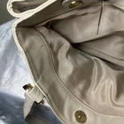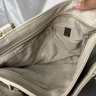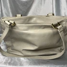 This SAS Genuine Leather Handbag is a vintage-inspired purse handmade in the USA. Crafted from cream leather with a knit fabric type, this medium-sized bag features a rectangular shape with a zip and magnetic closure. Complete with gold hardware, double cream handles, and a lined interior with inner pockets, this versatile bag is perfect for various occasions such as travel, weddings, parties, workwear, and more. Its classic design and high-quality materials make it a stylish and functional accessory for any woman on the go. INCLUDES KEY FOB! Condition: normal wear and tear. Small paint chipping, some pen markings.