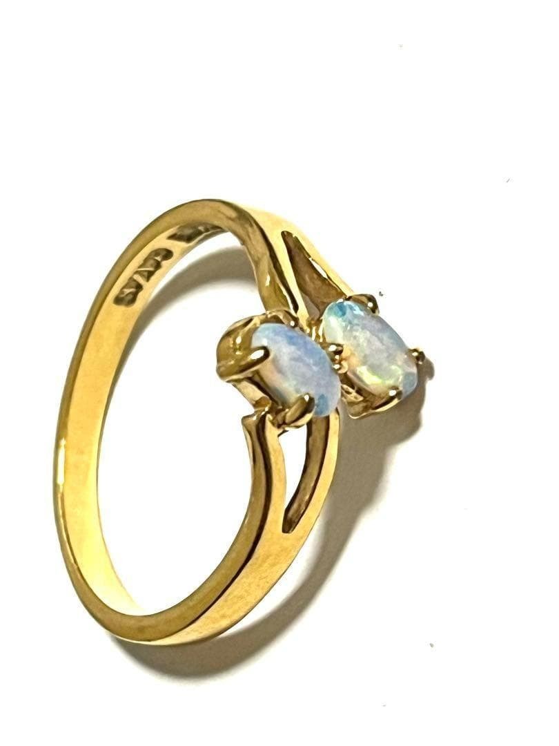SAVAS Opal Gold Tone Ring 2-Stone Design US 7 Vintage Gold tone ring featuring two beautiful opal stones in a simple and elegant design. • Brand: SAVAS• Stones: Opal (2 stones)• Color: Gold tone• Material / Finish: 22KGE (Gold Electroplated)• Design: Two-stone design• Size: Approx. US size 7• Condition: Good condition• Engraving / Hallmark: 22KGE• Style: Simple, vintage-inspired ring Please note that colors may appear slightly different depending on lighting and monitor settings.Please refer to the photos for details and condition. No box or accessories included.