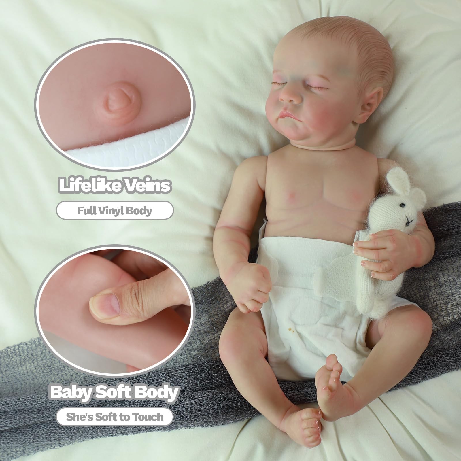 Reborn baby dolls Emotional Companionship: This baby's name is Levi, She hope to become your favorite reborn baby. Whether you play with her or feed her milk, we believe you will create unforgettable real life memories together Every Detail Is Lifelike: Just like a real baby. She has hand drawn hair, hand sewn eyelashes and natural skin textures. We believe when you see her, you will be pleasantly surprised by their realistic Soft Touch: Enhanced softness by 27% compared to regular cotton. Our cloth body is made of imported PP cotton, without skin irritation, allowing you to feel her warmth and comfort Play with Peace of Mind: Comply with ASTM F963 and EN71 standards. She is 18 inches tall and weights 1.85 LB newborn baby. The materials that make up her limbs are selected from 14 types of vinyl to ensure her safety Luxury Gift Box: Welcome your new baby Levi! In addition, now the set includes 1 set of grey clothing, 1 magnetic pacifier, 1 feeding bottle, 1 birth certificate and 1 gift box, all in package
