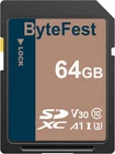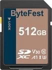 HIGH SPEED SHOOTING The ByteFest full size sd card is designed specifically for professional photographers, videographers, and video enthusiasts, adopting advanced storage technology and the high-speed interface standard. Up to 100MB/s read transfer, Speeds based on internal testing. Performance may vary depending on the host device. Whether it's capturing wonderful moments through rapid continuous shooting or seamlessly filming 4K HD videos, you can enjoy a smooth and unhindered user experience, making waiting a thing of the past. HIGH PERFORMANCE This sd card 512 gb for cameras features both Class 10 and U3 speed ratings, along with Video Speed Class 30 (V30), enabling continuous and stable video recording. Especially when capturing high frame rate and high-resolution videos, it ensures smooth playback without any lag, perfectly preserving vivid colors and intricate details. HIGH QUALITY & DURABILITY The SDXC memory card are highly reliable and stable. After rigorous quality inspection and testing, they can work normally under various environmental conditions, effectively protecting your data security. featuring exceptional water resistance, dust-proof, shock resistance, compression resistance, X-ray protection, high temperature tolerance, and low temperature resistance. Protect your data securely. WIDELY COMPATIBLE Widely compatible with a variety of DSLR cameras, digital cameras, camcorders, laptops, tablets, dashcams, and more. HIGH CAPACITY OPTIONS Multiple capacity options available, meet your needs from everyday photography to professional photography. Whether it's for family gatherings, traveling landscapes, or professional photography, it's easy to store and no longer worry about the lack of space.