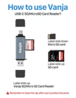 Multi-Function Design: micro sd card adapter set the USB 2.0 plug, Micro USB plug and USB C plug in one, making this mini sd card adapter compatible with all USB C PC tablets and Android smart phones that support OTG function. More Easily Read Most Memory Cards: memory card adapter USB C for data transmission, manage all your data from/to devices and across multiple plat forms (Create, copy, edit, move, delete, rename, open, and so on). It is compatible with SDXC SDHC MMC RS-MMC Micro SD TF Micro SDXC Micro SDHC UHS-I memory cards. On-The-Go Date: Micro SD to USB adapter supports on all OTG device. Playback video/music directly from external memory without occupying space on device. Share video or picture to your families or friends in anytime anywhere. (NOTICE: This micro SD card reader USB C is not compatible with iPhone or iPad). Universal Compatibility and Easy Use: Powers via USB C/Micro USB/USB port, no additional power supply needed. Easy to take, use and install, no additional software installation required. (No drivers required for Windows 10, 8, 7, Vista and XP, MAC OS 10.4.6 and above, as well as Android). Reliable Performance: Backed by 's commitment to quality and durability, this mini sd card reader ensures reliable performance and seamless data transfer.