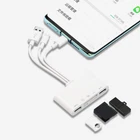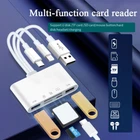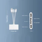SD Card Reader Adapter Memory Card Reader 5 in 1 USB 3.0 OTG For iPhone/iPad Features: Plug and Play: This memory card reader has various interfaces, no WIFI, network or drivers required, super easy to use. usb / usb c(type c) / i - OS Connector/ sd card slot / micro sd card slot and i Phone charging port for Phone/Pad, easily transfer photo video and file information. Charging for i- Phone/Pad: Unlike other sd card adapters, our upgraded sd card reader has a charging port for i- Phone/i-Pad. Charging and reading can be carried out at the same time, so you no longer have to worry about the phone running out of power during the transfer process. Fast Transfer Speed: The high-speed two-way transfer from SD card reader can save you a lot of waiting time. allowing you to easily manage data between i- Phone /Pad/ Android / computer and other devices. Multi-function: It can connect more USB peripherals, such as camera, TV, USB flash drives, card reader, etc. You can connect your PC keyboard or mouse to your Phone/Pad/PC via the USB camera adapter to Enjoy faster and easier chatting and typing while working. Wide Compatibility: The SD/TF card reader USB adapter supports standard photo formats, including JPER and RAW, as well as SD, HD video formats, and supports all i - OS devices with i - OS13 and above and OTG Android phone/computer and other devices with USB port, The micro sd card reader supports up to 1TB memory cards and 512GB USB2.0 flash drives, the USB3.0 flash drives cannot exceed 128GB. Package include: 1* 5-in-1 Memory Card Reader or 1*type-c to SD only!!!