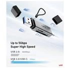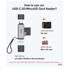 【USB 3.0 + USB C】 Both interfaces support high-speed data transfer up to 5 Gbps, allowing you easily transfer 1G files in seconds. Dual Card Slots, support SDXC, SDHC, SD, MMC, RS-MMC, Micro SDXC, Micro SD and Micro SDHC cards from Camera/ Gopro/ Dash Cam/ Surveillance camera. Backwards compatible with USB 2.0 and USB 1.1. * Memory cards shown in images are not included in the product. 【Double duty】 Simultaneously reading and writing on two cards to save the constant plugging and pulling of plugs. Enjoy fast photo downloads, smooth video editing and fast 3D Printer file transfers. Double your productivity with simultaneous microSD/SD card access. View recordings of your security cameras, wildlife monitors, private surveillance cameras and car monitors instead of bringing them home to you. 【Plug and Play】uni Card Reader for camera memory card has handy covers at both ends to keep out liquid and dust. Its slim profile makes it easy to store in your camera bag or backpack, and the useful cord keeps it from getting lost and provides convenient access to micro/SD cards when needed. No driver is required in Windows 11/10/8/7/Vista or Mac OS X 10.2 and later. No additional power supply is required. 【Wide Compatibility】Compatible with iPhone 15 Pro/Pro Max, MacBook Pro (2023~2016), MacBook (2022~2015), iMac Pro (iMac), Acer Aspire Switch 12S/R13, Predator 15/17X, XPS 13/15/17, Alienware 13/15/17, Spectre x360, Microsoft Surface Pro, Book 2, Razer Blade 15/Stealth 13/Pro 17, Samsung Galaxy Tab Pro, S23/ S22 Ultra/ S21/ S20 and most other USB-C / A devices. 【No Camera Software Required】uni high speed Memory Card Reader connects directly to your Android phone's USB-C port, allowing you to instantly view your footage and manage photo videos without the need for additional apps or Wi-Fi connections. Share your experiences in real-time and never miss an exciting moment again! uni Micro SD USB Adapter with 24/7 customer service and hassle-free 18-month warranty. Please rest assured we stand behind our products and customers.