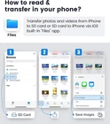 Two-way transfer : The SD Card Reader for iPhone supports two-way transfer,from SD card to iPhone or iPhone to SD memory cards. Double duty : The iPhone SD Card Adapter with Dual Slots is compatible with SD,SDHC,SDXC,MicroSD,MicroSDXC and MicroSDHC memory cards. Raw files : The SD Card Reader supports standard photo formats including JPEG,RAW,and 4K video formats including H.264 and MPEG-4. High-speed : Fast transfer speed,ensures high-speed syncing for raw photos,4k videos,and more. Play and Play : The SD Card Reader does not require third-party apps,uses the iOS built-in Photos or Files app,and supports play videos. Dual-Connector (Lightening&USB-C Ports) : The inclusion of both a Lightening cord card reader and a USB-C to lightening adaptor, ensuring compatibility with almost all your gadgets, from iPhone 5 - 14 to your USB-C iPhone 15 16, iPad, Macbook, Mac, Laptop or Android Devices. A must have for photographers : The Oyuiasle SD card reader is a photography accessory for digital hunting trail cameras. If you like to take photos for fun or even if you are a photographer on the go who'd like to view their photos on a iPhone or iPad- possibly even uploading some from the field before, you need this! When plugged into phone with SD card in, you simply pull up your Photos app and a new tab comes up at the bottom that reads "Import" and you can directly upload the photos to your phone. so easy! What You Get: Oyuiasle SD Card Adapter (2-in-1, Dual-slot), Oyuiasle USB-C to Lightening OTG adapter, User manual.