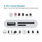 NIB SD Card Reader USB 2.0 Dual Slot Flash Memory Card Reader TF, SD, Micro SD, SDXC, RS-MMC,Micro SDHC, UHS-I for Mac, Windows, Linux, Chrome, Read 2 Cards Simultaneously Interface: USB 2.0 Support memory card: SD, Mini SDHC, TF, RS-MMC, SDHC Installation method: external Applicable gifts occasions: awards commemorative, trade fairs Material: Plastic Interface type: usb Type: Type A: Product Description: The TYPE-C 3-in-1 Adapter (NK-103 TYPE-C) is specially developed for the peripheral expansion of many TYPE-C interface electronic devices; through the TYPE-C 3-in-1 adapter, we can idle The memory card acts as a backup disk, backing up the files in the device, or temporarily viewing the large memory movie photos (the IOS device temporarily only supports importing photos of the non-digital camera photo naming rules in the memory card into the IOS device); And through the USB socket, we can connect peripherals supported by the corresponding device with less than 500mA, such as keyboard, USB network card, USB headset and so on. Two: equipment parameters: Working voltage: 5V Working current: 100-500mA TYPE-C interface: Write: 12M/S-16M/S Read: 15 M/S -18 M/S Adapter port: USB female / SD card / TF card