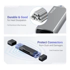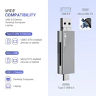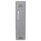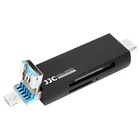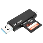 Product Highlights USB 3.0 multi-function card reader. Features three ports: USB 3.0, Micro USB 2.0 and Type-C USB 3.0 Adopts Genesys Logic GL3224 chip Access to SD and Micro SD / TF cards simultaneously High-speed data transfer, plug-and-play design Premium aluminum alloy housing Compact and portable design Model Support Memory Cards Support Systems Ports Package Includes CR-UTC3II SDXC, SDHC, SD, MMC, RS-MMC, Micro SD, TF, Micro SDXC, Micro SDHC and UHS-I memory cards Windows 10/8.1/8/7/XP/Vista, MacOS, Chrome, Linux , etc. USB 3.0, Micro USB 2.0 and Type-C USB 3.0 USB 3.0 Card Reader x 1 Lanyard x 1 The JJC USB 3.0 Card Reader expands 2 card slots (SD/TF) to your computers, Micro OTG / USB-C OTG-enabled phones, or tablets. It is a great way to expand backup space to your device and better protect important data. Besides that, it is also a convenient method to exchange files/photos/videos between the camera's SD cards and your phone or between dual memory cards. Thus, you can instantly share happiness on social media or email your friends. Genesys Logic GL3224 chip and USB 3.0 technology greatly ensure a fast and stable data transfer rate. This card reader can read and write on two cards simultaneously and supports a capacity of up to 1TB . It supports SDXC, SDHC, SD, MMC, RS-MMC, Micro SD, TF, Micro SDXC, Micro SDHC, and UHS-I memory cards. It is a plug-and-play design; no drivers are required. Therefore, the card reader can achieve faster identification. The card reader housing is made of high-quality aluminum alloy, which is durable and good for heat dissipation. Protective caps protect both connectors from dust and scratches. The compact and portable design also makes it easy to carry. It takes little space, and you can put it into your pocket or handbag while on the trip. Moreover, a lanyard is included in the package to prevent loss.