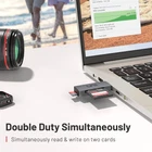 Read/Write SD/TF cards on your USB-A enabled devices 【Super Speed Data Transfer】USB 3.0 SD card reader brings you 5Gbps quick and reliable data transfer speed between computer and your memory cards, 10x faster than USB 2.0. An HD movie or large file can be transferred in a few seconds by Micro SD card adapter. 【Read & Write Simultaneously】Two memory cards can be written & read at the same time with USB SD Card Reader for camera. Transfer your data from one to another with ease. Plug and play without extra drive or software. Note: Transfer speed may be slower when 2 slots work together. 【Excellent Compatibility】The SD card reader for laptop supports up to 2TB memory card capacity, expanding the range of available cards. Compatible with SD, SDXC, SDHC, MMC, RS-MMC, Micro SDXC, Micro SD, Micro SDHC, and UHS-I Cards. Hassle free use on Windows 7/8/10/11, MacOS 10.8~10.13, Chrome OS, Linux. NOTE: Memory cards NOT included. 【Special Design】The compact & slim SD card reader for PC design will never block other ports of your PC. The indicator light of our Micro SD Card Reader will show the working status. With better heat dissipation and better durability, our SD card adapter's aluminum case enhances the product lifespan. Plug and unplug your cards easily. 【What You Will Get】super speed Micro SD card reader is equipped with 24/7 customer service and a worry-free 18-month 𝗐𝖺𝗋𝗋𝖺𝗇𝗍𝗒. Please rest assured we stand behind our products and customers.