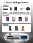 【Plug and Play】This sd card adapter no need drivers or software. Two-way transfer, just plug and play. Easy to use. With its USB-C connector, it is compatible with a wide range of devices, including the latest smartphones, tablets, and laptops 【Dual Slot Design】The Sd Card Reader for Android is with SD/Micro SD slot, support SD, SDHC, SDXC, Micro SD, Micro SDHC, Micro SDXC cards. Allow you to browse and copy photos or videos from your cameras anytime and anywhere, easily and quickly share your beautiful moments 【USB Port Extend】 This micro SD card reader features a USB A female port, which allows you easily connect to a wide range of USB devices, including USB Flash disks, USB hard disks (Supports a maximum of 1TB USB flash drive and USB hard drive), MIDI keyboards, mice, cameras, and more. This sd card adapter is particularly useful for photographers, videographers, and professionals who require a reliable and convenient way to transfer large files between devices 【Multifunctional Card Reader】The USB-C SD card reader is a versatile and convenient device that allows you to access multiple types of memory cards with ease. With its USB-C interface, it is compatible with the latest devices and offers fast data transfer speeds. The compact size and sleek design make it a must-have accessory for anyone who needs to manage their memory cards efficiently 【 Widely Compatible 】This sd card reader is compatible with smartphones, tablets, and laptops with a USB-C connector, including android devices, iphone 15, 15 Plus/15 Pro/15 Pro Max, etc
