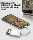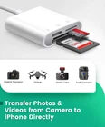 This SD card reader is an ideal for iOS devices users who are keen on photography. There is no worry about personal privacy, and no need of downloading a third app, just plug and play! Wide Compatibility Dual SD card slot: Support SD, SD-XC, MMC, RS_MMC, SD_HC, Micro SD, MicroSDHC, MicroSDXC SD Card Reader for iPhone (requires iOS 9.2 or later) For iPhone 12 Pro, iPhone 12, iPhone SE(2020), iPhone 11, iPhone XS, iPhone XS Max, iPhone XR, iPhone X, iPhone 8, iPhone 8 Plus, iPhone 7, iPhone 7 Plus, iPhone 6s, iPhone 6s Plus, iPhone 6, iPhone 6 Plus, iPhone 5s, iPhone SE, iPhone 5c, iPhone 5 SD Card Reader for iPad (requires iOS 8.0 or later) For iPad Mini, Mini 2, Mini 3, Mini 4, Air, Air 2, iPad Pro (9.7-inch), iPad Pro (12.9-inch) Instructions 1. Insert a SD card to the slot and connect it to iPhone/iPad; 2. Open the “Files” App on iPhone/iPad, find the SD card folder; 3. Start to view or transfer files between SD card and device. Packing List: 1 x SD Card Adapter for iPhone 1 x User Manual [Ideal for iOS Device] SD card reader for iPhone provides convenient way to transfer RAW photos, HD videos and large files to iPhone iPad iPod [Wide Compatibility] Support for iOS 9.2 or later for iPhone 12/12Pro iPhone SE(2020)/11/11 Pro/11 Pro Max/XR/X/XS/XS Max/8/8 Plus/7/7 Plus/6/6 Plus/6S/6S Plus/SE/5/5C/5S, iOS 8.0 or later for iPad mini 2/3/4, iPad Air/iPad Air 2, iPad(5th generation), iPad(6th generation) and iPod [Capacity & Formats] This for iPhone SD card reader supports SD, SDHC, SDXC, micro SD, micro SDHC, micro SDXC card with capacity no more than 256GB of JPEG/RAW/H. 264/ MPEG-4 format files. Wi-Fi SD card is not supported. [Plug and Play] No app, computer or extra driver required, connect the SD card adapter to your iPhone iPad easily, you can start to transfer and view photos and videos on your iOS devices freely. [Widely Applied System] This brilliant SD card reader for iPhone also works for home security camera, digital camera, action camera, dash cam, trail camera, etc. You can directly view and share photos and videos from these devices on your iPhone and iPad.