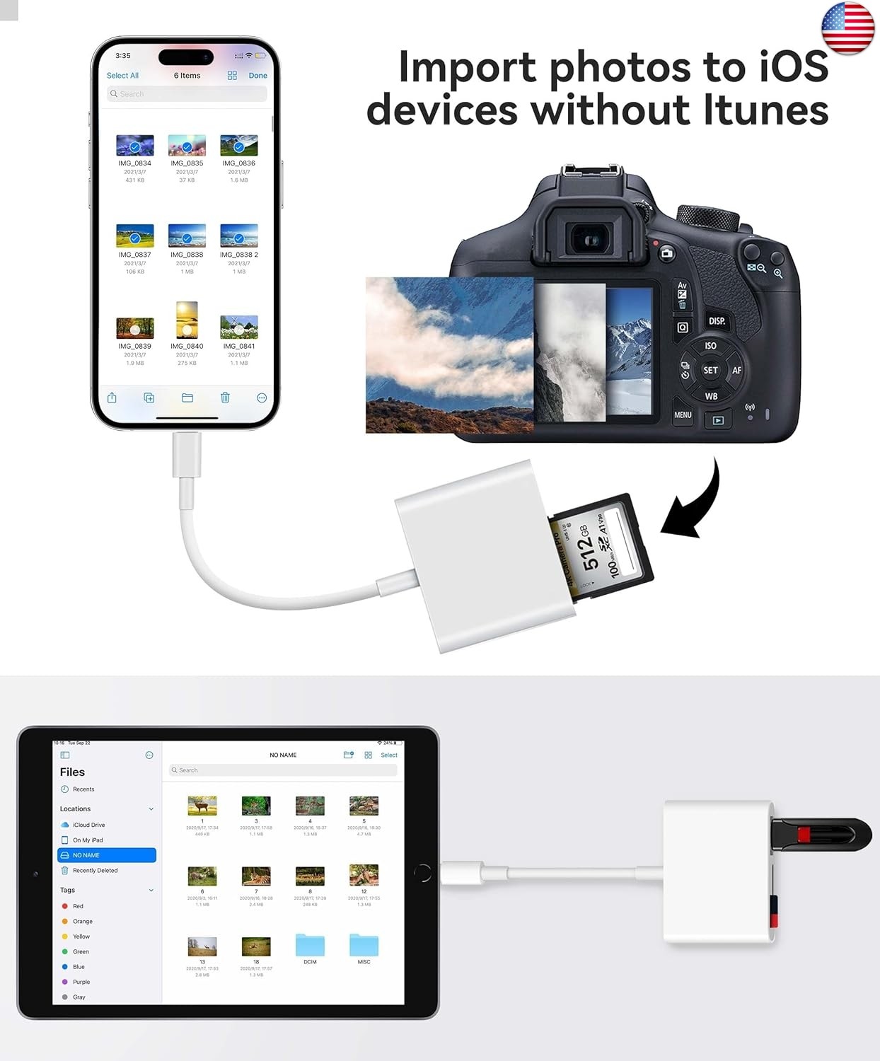 SD Card Reader for iPhone iPad Built-in Lightening & USB-C Dual Connectors Card Adapter with SD MicroSD USB-A 3 Slots Trail Camera Memory Card Viewer, Portable No App Required Plug and Play Store News Favorite Feedback Contact SD Card Reader for iPhone iPad Built-in Lightening & USB-C Dual Connectors Card Adapter with SD MicroSD USB-A 3 Slots Trail Camera Memory Card Viewer, Portable No App Required Plug and Play About this item DESIGNED FOR PHOTOGRAPHY CREATORS: The AkHolz SD card reader is a photography accessory for KODAK Canon Nikon DSLR digital hunting trail cameras. No third-party apps required. Plug in your iPhone and use iOS built-in Photos to import photos videos with one click. Or use the iOS built-in Files to import and export any files. DUAL CARD SLOT DESIGN: The AkHolz card reader for iPhone connects to both Lightening and USB-C ports to read either full size SD SDHC and SDXC cards or the newer microSD, microSDHC and microSDXC cards, makes this sd adapter incredibly versatile and valuable. USB FEMALE DESIGN: The AkHolz Lightening to SD USB adapter is not only designed with dual memory card slots, but also designed with USB-A female port, it is an OTG camera adapter for iPhone & iPad, supports digital cameras, DSLR cameras, hunting trail cameras, USB flash drives, card readers, USB headphones, electric guitars, MIDI keyboards, keyboards and mice. This USB Camera SD Adapter does not require an additional application or removal of the camera's memory card. Printers are not supported. DUAL-CONNECTOR DESIGN: The AkHolz SD card adapter features both Lightening and USB-C port capability (comes with a USB-C to Lightening adapter), plug the USB-C end of the adapter into the USB-C connector on your iPhone or iPad, then connect the Lightening card reader. Lets you to connect to USB-C enabled iPhone 15, iPad, Mac or even Android and Pcs to conveniently provide data OTG functionality. The AkHolz dual-connector SD adaptor also lets you to go back and forth from your Android Windows to Apple devices, transferring video or whatever else. PLUG AND PLAY: The AkHolz memory card reader for iPhone iPad, no drivers or special setup are required, no network, no caching, and directly recognizes the memory cards for selecting photos videos to import vis iOS's Photos system. TWO-WAY TRANSFER: The AkHolz SD card reader supports two-way transfer, plug it into the iPhone's port and using the iOS's Files system, was able to see photos from your camera's SD card or download pictures to the card. Plug and play, easy to import and export a variety of file types including photos, videos, music and documents. YOU HAVE TO HAVE THIS: If you like to take photos for fun or even if you are a photographer on the go who'd like to view their photos on a iPhone or iPad - possibly even uploading some from the field before, you need this! Plug it right into your phone and the photos videos load so quick in your albums and able to save them. It is quick and so simple. See more product details Specifications Media SD Connectivity Dual Special Built-In Color White Additional Built-In Compatible Desktop, Data 68 Operating [MULTI] Hardware MicroSD, Model SD Manufacturer AkHolz Best #12 Item 0.47 Built-In Card Unit 1.0 Warranty 1 SECTION / FAMILY Computers + INFO ard Adapter with SD MicroSD USB-A 3 Slots Trail Camera Memory Ca Type SD Card Reader Product SD Card Reader Material Apto SKU 4172 Shipping policies Shipping policies: We ship all items directly from our supplier within 1 to 3 business days. Most of the items are delivered within 3-5 working days however in some cases the delivery time may be from 3 to 10 days, if it is the case please contact us to follow up on time to locate your shipment. All items are in stock when advertised. The inventory is updated and monitored regularly. However, if the demand exceeds our supply and there is a stock break we will give the customer the following options: Full and immediate refund Send the product to the customer when it becomes available again Offer the customer a product of similar style and quality. Your offer/purchase of the item implies that you agree to this policy. If you have a question about a product that is not answered in the description, please contact us via Ebay message and give us the opportunity to help you as well as to show you that we can become your supplier Trust and make sure we have what you are looking for. Return policies Return policy: We guarantee your satisfaction! If for some reason you are not satisfied with your item, you simply have to return it within 14 days for a full refund, less shipping cost. Please contact us before initiating the return so that we can issue a return authorization. Payment policies Payment Methods: We accept payment via any of the following methods: PayPal Credit cards or debit cards Apple Pay Google Pay Klarna Safe and easy payment methods that effectively protect our customers. Contact Contact us: Customer satisfaction is very important to us. If you have any problems with your order, contact us and we will do everything possible to make you satisfied. We guarantee that your problem will be resolved quickly. Whenever you are satisfied with your purchase, please leave us a positive evaluation. Your comments help us keep our prices low on eBay. Payment policies Copyright © 2025 premiumfindsusa. | All Rights Reserved