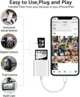 Product Description 2 in 1 Double Card Slot: The sd card reader for sd and micro sd memory card, support all iPhone with iOS 9.2 and up and iPads with iOS 8.0 or later,It's easily download photos or videos from SD cards directly to the iPhone or ipad, and share videos or photos with friends and relatives anytime and anywhere.(Tips: not fit for iPhone 15 Series and other USB-C devices) High Speed Data Transmission: The sd card reader for iphone data transmission speed can reach 20MB/S~30MB/S,the memory sd card reader for iphone can transmit photos and videos of your camera to your device in a few seconds, saving a lot of time. Plug and Play: You don't need a computer as a medium or install any applications when you use the memory card reader.,plug and play ,please wait for 5 seconds after connecting the device. Capacity and Format Support: The sd card reader support standard photo formats including JPEG and RAW,and SD,HD video formats including H.264 and MPEG 4,supports the memory card with a maximum capacity of 512GB Do the Best: Using the sd card reader, Will bring you more convenience,Using the micro sd card reader,Will bring you more interesting moments Material: plastic / ABS Weight: 0.8 oun ces Size: 5.3* 1.6* 1.5inches High-speed transmission: SD card reader for iphone data transmission speed can reach 20MB/s~30MB/s Maximum support capacity: 512GB Support Formats: SD card reader for i phone/ipad supports standard photo formats (including JPEG and RAW) and SD and HD video formats (including H.264 and MPEG-4). The SD/micro sd Card Reader for sd and micro sd memory card, support all iPhone with iOS 9.2 and up and iPads with iOS 8.0 or later For iOS9.2-12.4: the SD/micro sd card reader only supports one-way transmission from SD/TF to the iPhone/iPad, and does not support two-way transmission ONLY iOS 13 and later supports TWO-WAY transmission(transfer not only pictures and videos but also Word, Excel, and PDF, etc.) Remark: After the operation is completed,please remove the card reader and read it again. You can see that the picture or video has been uploaded to the storage card. *Warm Prompt* -----The SD card adapter for iPhone supports 512GB SD card and micro SD card/TF card. However,due to the limitation of i0S system, only one card can be read at a time. Please do not read two cards at the same time.(Tips: For the Sony brand,the memory card only supports 256GB ) -----For iOS 13,it is no pop-up, you can find 'import' in the "Photos" app or" Files "app. -----Please ensure that the memory card has been correctly inserted into the camera memory card reader. If photos or videos are not transmitted,unplug the reader and memory card and reconnect -----If the trail camera viewer is prompted that the cable or accessories have not been authenticated, it may be in bad influence, please pull them out and insert them again. If there's another problem with re-insertion, clean the socket interior of the iPad or the Phone with a cotton swab dipped in alcohol ----- For iOS9.2-12.4, you can directly view the full resolution by long pressing the thumbnail in the "photos" app. For ios13 and above, you can view the full resolution directly in the files app. You can also long press the thumbnail in the "photos" app to view the full resolution directly.