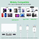 【5-in-1 sd card reader for iphone】All in one multi memory card reader for phone/pc,satisfies your need of almost every devices. Upgraded memory card adapter can read and write 1*SD, 1*TF/Micro SD, dual USB 3.0 and Lightning charging port at the same time, which can greatly improve your work efficiency. 【Broad Compatibility】This camera card reader for PC/iPhone/iPad and USB-C devices can easily read almost all your memory cards with speed and convenience. It supports SDXC/SDHC/SD/MMC/RS-MMC/Micro SD/TF /Micro SDXC/Micro SDHC/UHS-I memory cards. Also the additional two USB port can work with USB flash drive, U disk, hard drive, keyboard, mouse, printer,etc. Also, we upgrade a Lightning charging port, no need to worry about the power. 【Simultaneously Reading&Writing & Plug and Play】This SD/TF card reader Supports reading and writing two cards simultaneously. You can easily review files or back up and archive photos and videos in SD/TF cards.No drive needed for various of operation system. You can transfer picture or video from Phone/Tablet/PC to SD/TF card or from SD/TF card to Phone/Tablet/PC.Making it much easier to share photos and videos with your families or friends in anytime. Raw Data, Blistering fast transfer speed, ensures high-speed syncing for raw photos, 4k videos, and more. 【Multi-function Fast Transfer】The high speed transfer of the iphone to usb adapter can save you a lot of waiting time. SD card reader lightning can connect more USB peripherals, such as camera, TV, USB flash drives, card reader, etc. You can connect your PC keyboard or mouse to your Phone/Pad/PC via the USB camera adapter to Enjoy faster and easier chatting and typing while working. 【What You Will Get】】1*SD/TF Card Reader and our 12-month worry-free warranty and service. 100% customers satisfaction is our goal, so please feel free to contact us if you have any questions, we will get you back within 24 hours.
