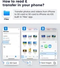 Two-way transfer : The SD Card Reader for iPhone supports two-way transfer,from SD card to iPhone or iPhone to SD memory cards. Double duty : The iPhone SD Card Adapter with Dual Slots is compatible with SD,SDHC,SDXC,MicroSD,MicroSDXC and MicroSDHC memory cards. Raw files : The SD Card Reader supports standard photo formats including JPEG,RAW,and 4K video formats including H.264 and MPEG-4. High-speed : Fast transfer speed,ensures high-speed syncing for raw photos,4k videos,and more. Play and Play : The SD Card Reader does not require third-party apps,uses the iOS built-in Photos or Files app,and supports play videos. Dual-Connector (Lightening&USB-C Ports) : The inclusion of both a Lightening cord card reader and a USB-C to lightening adaptor, ensuring compatibility with almost all your gadgets, from iPhone 5 - 14 to your USB-C iPhone 15 16, iPad, Macbook, Mac, Laptop or Android Devices. A must have for photographers : The Oyuiasle SD card reader is a photography accessory for digital hunting trail cameras. If you like to take photos for fun or even if you are a photographer on the go who'd like to view their photos on a iPhone or iPad- possibly even uploading some from the field before, you need this! When plugged into phone with SD card in, you simply pull up your Photos app and a new tab comes up at the bottom that reads "Import" and you can directly upload the photos to your phone. so easy! What You Get: Oyuiasle SD Card Adapter (2-in-1, Dual-slot), Oyuiasle USB-C to Lightening OTG adapter, User manual and our friendly customer service. Product description Oyuiasle SD Card Reader for iPhone,iPad and Trail Cameras. Oyuiasle SD card reader, easily and simply uploads photos and videos from camera roll to iPhone, is ideal for iPhone users. Dual connectors design. The inclusion of both a Lightening cord card reader and a USB-C to lightening adaptor, ensuring compatibility with almost all your gadgets, from iPhone 5 - 14 to your USB-C iPhone 15, 16, iPad, Mac, Laptop or other devices. Supports iPhone 5 to 14 series with Lightening connector. Support for iPhone 15 16 series, iPad or Macbook and others with USB-C connector. Support for Android phones/tablets/laptops/pcs with USB-C ports. Warm Tips: Comes with a USB-C to Lightening adapter that conveniently provides data OTG functionality, but not audio or charging. Dual slots design. Supports standard size SD SDHC and SDXC cards, as well as newer microSD, microSDHC and microSDXC cards. Warm Tips: Compactflash, MS or XD cards are not supported. Usage instructions For iOS users: One-way transfer via the iOS built-in Photos app for iOS 9.2 to iOS 12.4 users . This iOS built-in "Photos" app can only recognize digital camera photos and videos, not other files and can only transfer digital camera photos and videos from memory card to iPhone or iPad. The Photos app automatically pops up when the Oyuiasle SD card reader is inserted. Long press on a thumbnail in the Photos app to view the full resolution directly. Select photos and videos. Import with one click and share to social media quickly and easily. Two-way transfer via the iOS built-in Files app for iOS13 or later users This iOS built-in "Files" app is a key tool for iOS to access external memory cards. On your iPhone or iPad, you can access ,organize and edit your files of external memory card in the iOS built-in Files app. Plugged it into your iPhone, inserted the SD card from the camera into it. There's no automatic pop-up window, you need to manually pulled up the “Files” app and go to the NONAME (or “Untiled”, which is the name of the memory card) drive to be able to upload any picture to your iPhone. You can copy move edit or even delete any files on the memory card just like operating on computer, and of course you can copy photos from memory card to iphone, or download photos videos from iPhone to memory card. For Mac, laptops, tablets or android users: No driver is required - simply plug and play. Warm tips for android users: Please ensure that the memory card format is FAT32/EXFAT, as most phones or tablets do not support NTFS. Please enabled your OTG function on your USB-C Android devices before plugging in. Features and compatibility Dual-slot Supports standard size SD SDHC and SDXC cards, as well as newer microSD, microSDHC and microSDXC cards. Dual-connector Features both Lightening and USB-C port capability (comes with a USB-C to Lightening adapter), lets you to go back and forth from your Android Windows to iOS devices, transferring photo, video or whatever else. Two-way transfer Transfer photos from digital camera SD card to iPhone or from iPhone to SD card via iOS built-in “Files” APP for iOS users with iOS 13.0 or later. Plug and Play No drivers or special setup are required. Just plug it in to your iPhone insert the card, manually open the iOS built-in "Photos" or “Files” APP and it will read it automatically. Note: After iOS13, it will not pop up the window automatically. Compatible with iPhone Compatible With iPhone 16 Pro/16 Pro Max/16, iPhone 15 Pro/15 Pro Max/15/15 Plus, iPhone 14 Pro/14 Pro Max/14/14 Plus, Phone 13 Pro/13 Pro Max/13 mini/13, iPhone SE (3rd generation), iPhone 12 Pro/12 Pro Max/12 mini/12, iPhone 11 Pro/11 Pro Max/11, iPhone SE (2nd generation), iPhone XS/XS Max/XR/X, iPhone 8 Plus/8/7 Plus/7/6s Plus/6s/6 Plus/6, iPhone SE (1st generation) and iPhone 5/5s/5c. Compatible with iPad Compatible With iPad Pro 13‑in. (M4)/11‑in. (M4)/11‑in. (M2)/11‑in. (4th Gen)/11‑in. (3rd Gen)/11‑in. (2nd Gen)/11‑in. (1st Gen)/12.9‑in. (6th Gen)/12.9‑in. (5th Gen)/12.9‑in. (4th Gen)/12.9‑in. (3rd Gen)/12.9‑in. (2nd Gen)/12.9‑in. (1st Gen)/10.5‑in./9.7‑in., iPad Air 13‑in. (M2)/11‑in. (M2)/5th Gen/4th Gen/3rd Gen/Air 2/1st Gen, iPad 10th Gen/9th Gen/8th Gen/7th Gen/6th Gen/5th Gen, iPad mini 6th Gen/5th Gen/mini 4/mini 3/mini 2 Compatible with Mac Comes with a converter from lightening to type c so you can be used on both 