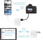 SD Card Reader for iPhone to 3 in 1 USB Camera Adapter OTG Micro SD TF Memory Card Reader for iPad About this item 3 IN 1 CAMERA READER ADAPTER: Simplify your data transfer process with our versatile camera reader adapter for iPhone and iPad. It supports SD, Micro SD (TF) cards and USB flash drives, ensuring compatibility with all iPhones running iOS 9.2 or higher and iPads with iOS 8.0 or higher. Easily download photos and videos directly from your SD card to your iPhone or iPad, eliminating the need for complex file transfers. EASY TO USE, PLUG AND PLAY: Say goodbye to third-party connection apps and the need for an internet connection. Simply connect the SD card reader or USB 3.0 devices to your device and wait for just 3-5 seconds. It's that easy! Now you can instantly share your cherished moments with family and friends in real-time using this convenient iPhone SD card reader adapter. HIGH-SPEED DATA TRANSFER: With fast transmission speeds of up to 30MB/s on iPhone and iPad, our SD card reader ensures swift and efficient transfer of your camera photos and videos. Enjoy the convenience of transferring your precious memories to your iPhone or iPad within seconds, saving you valuable time. CAPACITY AND FORMAT SUPPORT: Our camera adapter to iPhone supports a wide range of standard photo formats, including JEPG and RAW, as well as SD and HD video formats like H.264 and MEPG-4. It is compatible with popular iPhone models such as iPhone 14, 13, 13 mini, 13 Pro, 13 Pro Max, 12, 12 mini, 12 Pro, 12 Pro Max, 11, 11 Pro, X, XS, XS Max, XR, 8, 8 Plus, 7, 7 Plus, 6s, 6s Plus, 6, 6 Plus, SE and iPads. MULTI-PURPOSE: This digital camera adapter iPhone serves a multitude of purposes. It can be widely used with various SD cards, Micro SD cards and USB 3.0 devices, including digital cameras, card readers, USB flash drives, MIDI keyboards, mice, U disks, hubs, electronic pianos, drums, audio interfaces, mixers, USB microphones, and more. Discover endless possibilities with this versatile adapter.