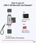 【USB 3.0 + USB C】 Both interfaces support high-speed data transfer up to 5 Gbps, allowing you easily transfer 1G files in seconds. Dual Card Slots, support SDXC, SDHC, SD, MMC, RS-MMC, Micro SDXC, Micro SD and Micro SDHC cards from Camera/ Gopro/ Dash Cam/ Surveillance camera. Backwards compatible with USB 2.0 and USB 1.1. * Memory cards shown in images are not included in the product. 【Double duty】 Simultaneously reading and writing on two cards to save the constant plugging and pulling of plugs. Enjoy fast photo downloads, smooth video editing and fast 3D Printer file transfers. Double your productivity with simultaneous microSD/SD card access. View recordings of your security cameras, wildlife monitors, private surveillance cameras and car monitors instead of bringing them home to you. 【Plug and Play】uni Card Reader for camera memory card has handy covers at both ends to keep out liquid and dust. Its slim profile makes it easy to store in your camera bag or backpack, and the useful cord keeps it from getting lost and provides convenient access to micro/SD cards when needed. No driver is required in Windows 11/10/8/7/Vista or Mac OS X 10.2 and later. No additional power supply is required. 【Wide Compatibility】Compatible with iPhone 15 Pro/Pro Max, MacBook Pro (2023~2016), MacBook (2022~2015), iMac Pro (iMac), Acer Aspire Switch 12S/R13, Predator 15/17X, XPS 13/15/17, Alienware 13/15/17, Spectre x360, Microsoft Surface Pro, Book 2, Razer Blade 15/Stealth 13/Pro 17, Samsung Galaxy Tab Pro, S23/ S22 Ultra/ S21/ S20 and most other USB-C / A devices. 【No Camera Software Required】uni high speed Memory Card Reader connects directly to your Android phone's USB-C port, allowing you to instantly view your footage and manage photo videos without the need for additional apps or Wi-Fi connections. Share your experiences in real-time and never miss an exciting moment again! uni Micro SD USB Adapter with 24/7 customer service and hassle-free 18-month warranty. Please rest assured we stand behind our products and customers.