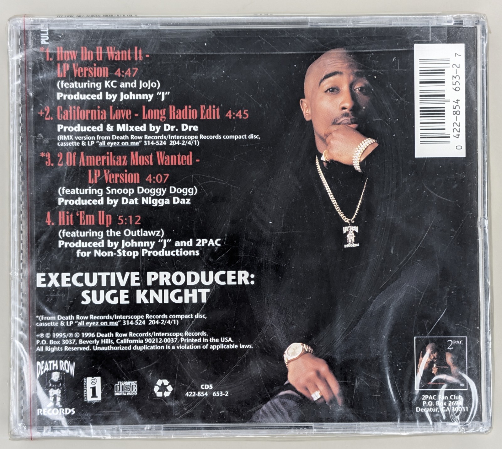 VINYL TITLE — ARTIST (YEAR) • CATALOG Artist: 2Pac (featuring K-Ci & JoJo) Title: How Do U Want It / California Love / Hit ’Em Up Label: Death Row Records / Interscope Records Catalog Number: 422-854 653-2 Release Year: 1996 Country: USA Edition: STRICT FIRST EDITION / ORIGINAL 1996 PRESSING 💿 DESCRIPTION This is the original 1996 U.S. CD maxi-single release, a true artifact from the golden era of West Coast Hip-Hop. The disc features the #1 hit "How Do U Want It" and the rare "Long Radio Edit" of "California Love." Most importantly, it includes the legendary and controversial diss track "Hit ’Em Up," which remains one of the most significant recordings in the history of the genre. The front features the iconic red "2PAC DEATH ROW" hype sticker, which is still intact under the wrap. 💎 CONDITION disc: Presumed MINT (unplayed) case: Factory-sealed, never opened (small crack on back side and tear of the original shrink on front side) 🧾 NOTES FOR COLLECTORS This is a premier collector's item for any serious Hip-Hop enthusiast. Finding a First Edition Death Row release in a factory-sealed state with the original red pull string is becoming increasingly difficult. This specific single is highly sought after due to the inclusion of "Hit ’Em Up," a track that defined an entire era of the 90s rap rivalry. It is a perfect candidate for professional archival or grading (AMG/WATA). 🔍 MATRIX / LABEL DETAILS Barcode: 0 422-854 653-2 7 Label Code: Death Row Records / Interscope Records / Island Records Rights Society: ASCAP / BMI Back Cover Notes: Printed in the USA. Executive Producer: Suge Knight. 📦 SHIPPING 📮 STANDARD: 5–30 DAYS — FREE SHIPPING ✈️ INTERNATIONAL PRIORITY: 5–15 DAYS — 30$ 🚚 FEDEX EXPRESS: 3–7 DAYS — 65$ WORLD OF AUDIOPHILE (EBAY SELLER) 100% POSITIVE FEEDBACK • FREE SHIPPING WORLDWIDE FOLLOW ON INSTAGRAM: @WORLD_OF_AUDIOPHILE ⭐ LATEST BUYER FEEDBACK “ABSOLUTELY STUNNING VINYL! PERFECTLY PACKED, LIGHTNING FAST SHIPPING. 10/10 SELLER!” – BUYER FROM USA VIEW MORE FROM WORLD OF AUDIOPHILE