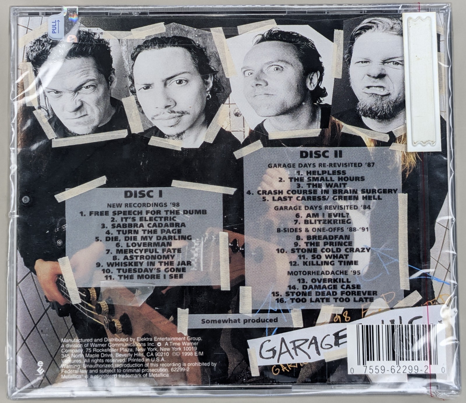 VINYL TITLE — ARTIST (YEAR) • CATALOG Artist: Metallica Title: Garage Inc. Format: 2 CD (Double Album) Label: Elektra Catalog Number: 62299-2 Country: US Year: 1998 Pressing: First Edition / Original Pressing 💿 DESCRIPTION Released on November 24, 1998, Garage Inc. is a definitive compilation that captures the raw energy of Metallica’s influences. This double-disc set is a massive tribute to the legends of rock, metal, and punk. Disc 1 features then-new 1998 recordings, including the iconic covers of "Turn the Page" and "Whiskey in the Jar." Disc 2 is a treasure trove for fans, compiling rare B-sides and the entirety of the long-out-of-print 1987 The $5.98 E.P. - Garage Days Re-Revisited . It is an essential piece of history that bridges the gap between Metallica’s thrash roots and their global superstardom. 💎 CONDITION disc: Presumed MINT (unplayed) case: Factory-sealed, never opened 🧾 NOTES FOR COLLECTORS ★★★ FIRST EDITION - ORIGINAL 1998 US PRESSING ★★★ This is a guaranteed original first press , not a modern reissue or a later "BMG" or "Club" edition. For serious collectors, the combination of the red tear strip and the original 1998 price stickers makes this a highly desirable "survivor" copy. Finding this specific pressing still factory sealed after nearly 30 years is becoming increasingly difficult. 🔍 MATRIX / LABEL DETAILS Barcode (UPC): 075596229920 Label: Elektra / WEA Manufacturing Olyphant Release Date: November 24, 1998 📦 SHIPPING 📮 STANDARD: 5–30 DAYS — FREE SHIPPING ✈️ INTERNATIONAL PRIORITY: 5–15 DAYS — 30$ 🚚 FEDEX EXPRESS: 3–7 DAYS — 65$ WORLD OF AUDIOPHILE (EBAY SELLER) 100% POSITIVE FEEDBACK • FREE SHIPPING WORLDWIDE FOLLOW ON INSTAGRAM: @WORLD_OF_AUDIOPHILE ⭐ LATEST BUYER FEEDBACK “ABSOLUTELY STUNNING VINYL! PERFECTLY PACKED, LIGHTNING FAST SHIPPING. 10/10 SELLER!” – BUYER FROM USA VIEW MORE FROM WORLD OF AUDIOPHILE
