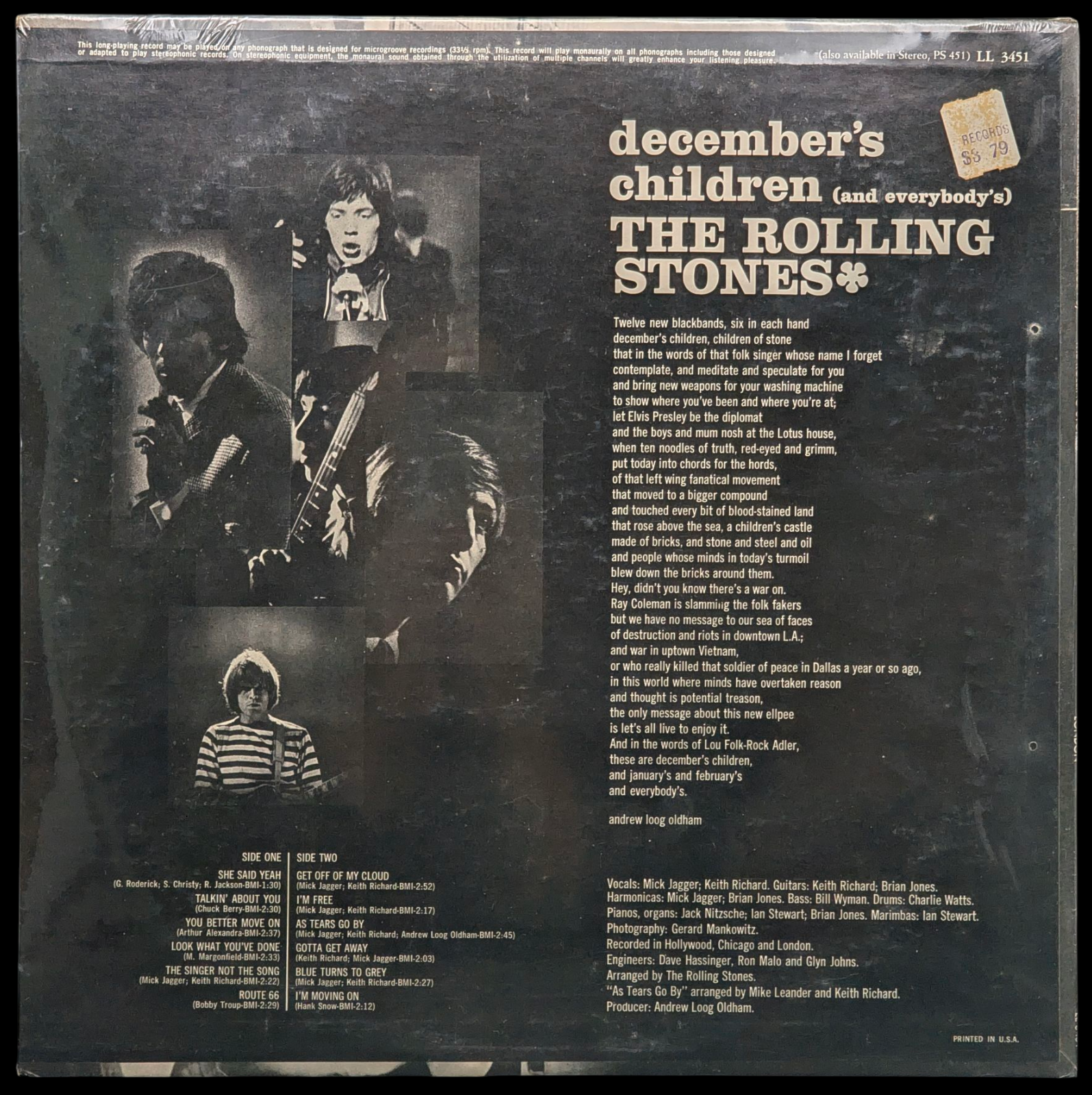 VINYL TITLE — ARTIST (YEAR) • CATALOG THE ROLLING STONES – “DECEMBER’S CHILDREN (AND EVERYBODY’S)” Label: London Records – LL 3451 (MONO) Format: Vinyl, LP, Album, Mono Country: USA Released: 1965 Genre: Rock Style: Blues Rock, British Invasion, Classic Rock 💿 DESCRIPTION Original U.S. London Records mono pressing of December’s Children (And Everybody’s) by The Rolling Stones, issued in late 1965. This copy retains its original factory shrink-wrap with the early hype sticker reading “including THE ROLLING STONES’ smash hit GET OFF OF MY CLOUD.” The spine clearly reads LONDON LL 3451, confirming a mono release. The cover features the well-known Gerard Mankowitz photograph of the band shot at the back entrance of London’s Green Park underground station — one of the most iconic Stones cover images of the early Decca/London era. 💎 CONDITION VINYL: Presumed MINT (unplayed) COVER: Factory-sealed, never opened (slight corner wear and minor aging shrink tensionмvisible at edges ) 🧾 NOTES FOR COLLECTORS Sticker variation: the rectangular “including GET OFF OF MY CLOUD” sticker was used only on early 1965–1966 mono and stereo pressings, preceding the later “Featuring the hit…” oval stickers. Catalog placement: LL 3451 (mono) and PS 451 (stereo) were released simultaneously; both were pressed by MGM’s Bloomfield, NJ and Richmond, IN plants for London Records. Shrink type: period-correct tight polyethylene wrap with corner folds — typical of mid-1960s U.S. London pressings, prior to Columbia House or later reseals. Back cover: includes Andrew Loog Oldham’s liner note essay and Printed in U.S.A. credit at lower right, consistent with first jacket printing. Retail price sticker: "$3.79 RECORDS"—vintage 1960s store tag, adds authenticity and period context. 🔍 MATRIX / LABEL DETAILS (Record sealed, matrix not visible.) However, known first mono pressings of LL 3451 typically have: Matrix (etched): ARL-7038-1A / ARL-7039-1A or -1B Label: London deep blue mono labels with “ffrr” ear logo and “Made in U.S.A.” text along bottom rim. Cover printer: London’s own laminated jacket (no RIAA logo present). 📦 SHIPPING 📮 STANDARD: 5–30 DAYS — FREE SHIPPING ✈️ INTERNATIONAL PRIORITY: 5–15 DAYS — 30$ 🚚 FEDEX EXPRESS: 3–7 DAYS — 65$ WORLD OF AUDIOPHILE (EBAY SELLER) 100% POSITIVE FEEDBACK • FREE SHIPPING WORLDWIDE FOLLOW ON INSTAGRAM: @WORLD_OF_AUDIOPHILE ⭐ LATEST BUYER FEEDBACK “ABSOLUTELY STUNNING VINYL! PERFECTLY PACKED, LIGHTNING FAST SHIPPING. 10/10 SELLER!” – BUYER FROM USA VIEW MORE FROM WORLD OF AUDIOPHILE