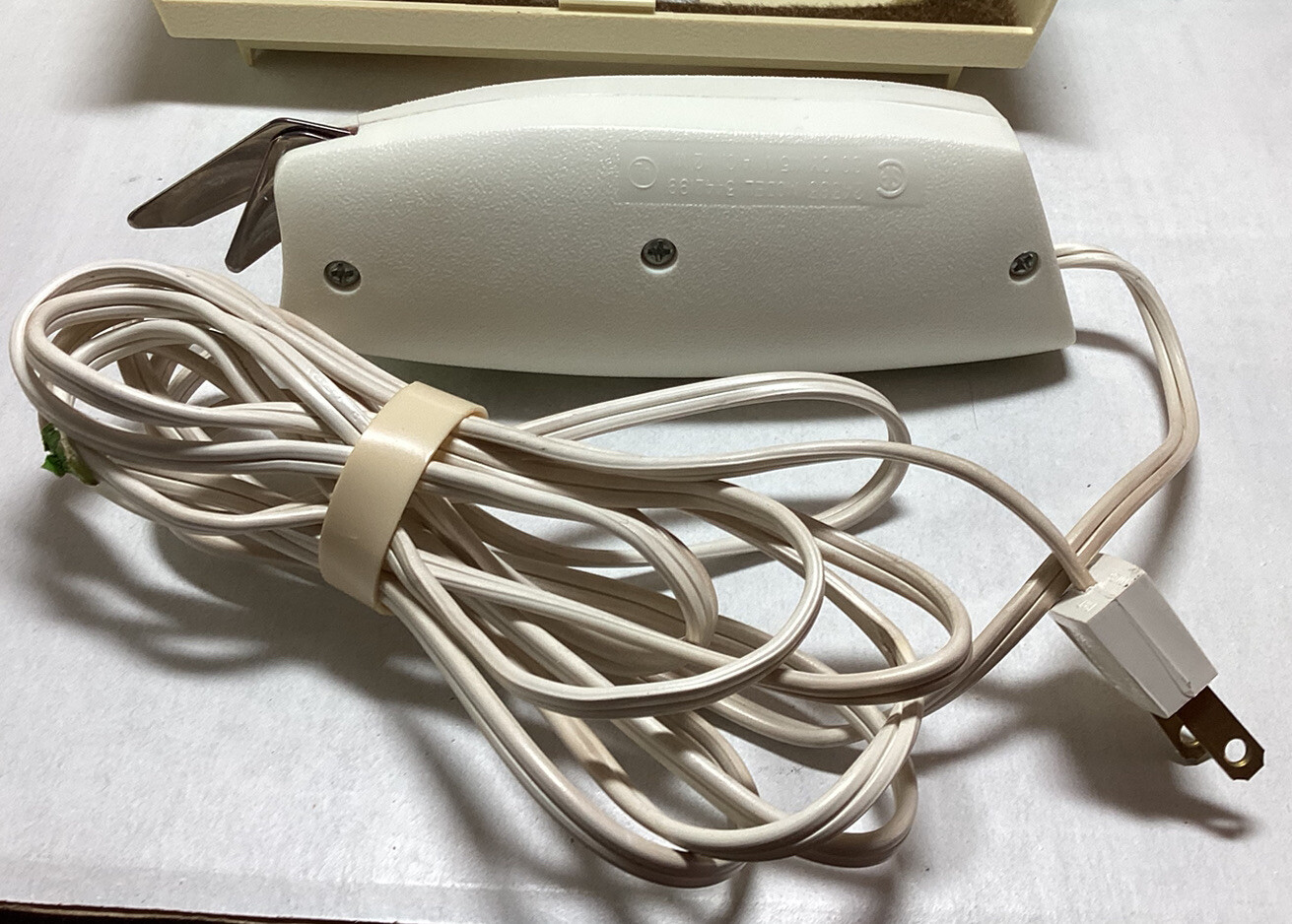 SEARS 2 Speed ELECTRIC SCISSORS Fabric Cutters Material Case Sewing Vintage I had it out and it worked fine. The trick to open the case, is push in on the tan case and lift the clear lid. There is a crack in the lid. See the pictures. Have questions, please write. Shipped USPS Priority Mail