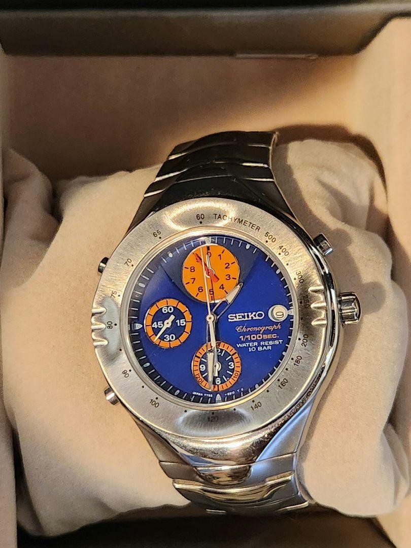 This Seiko Sportiva watch is a fantastic find—stylish, reliable, and built to last. The silver-tone case and clean dial give it a polished look, while the Japan-made quartz movement ensures precision. Even as a used piece, it’s in great condition with only minor wear, making it a smart buy for anyone who appreciates quality without the new price tag. Perfect for daily wear or adding to a collection!