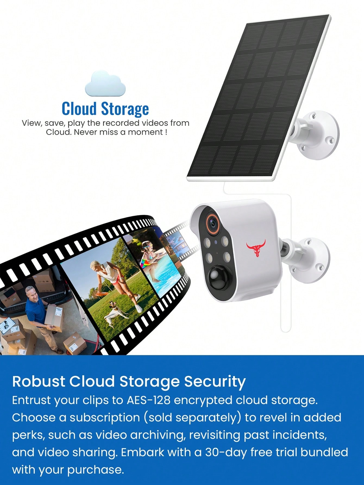 SHARKPOP Solar Security Cameras Wireless Indoor/Outdoor Surveillance, 1080P Live View WiFi Home Camera with Color Night Vision, 2-Way Audio, Human Detection, Cloud Storage Bullet Cam