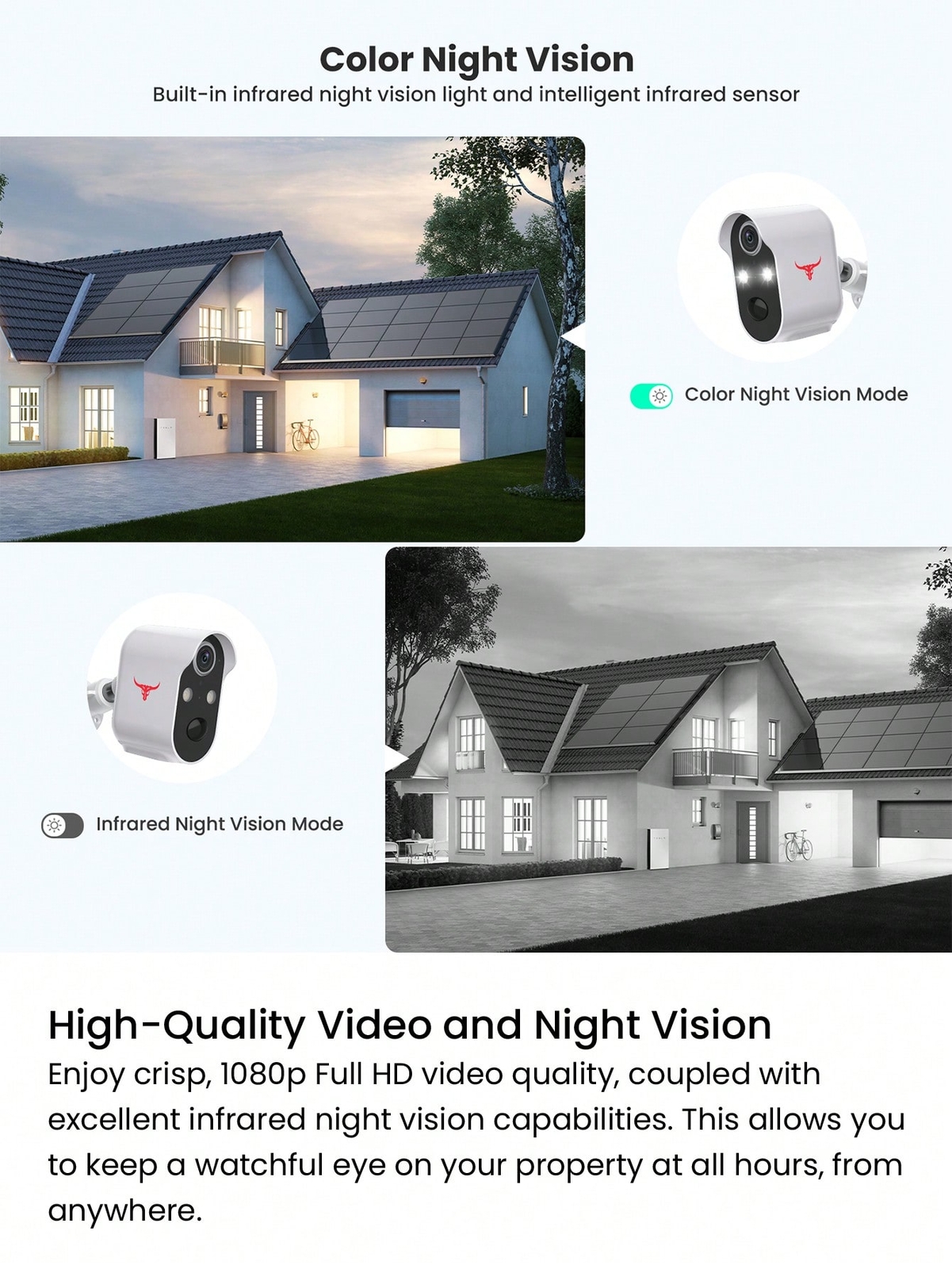 SHARKPOP Solar Security Camera Wireless 1080P Surveillance Outdoor WiFi Bullet cam with 4 Spotlights, Color Night Vision, 2-Way Audio, PIR Motion Detection, Cloud Storage, Smart AI Human Detection