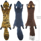 About this Item · SUPER VALUE DOG TOYS SET OF 5 : 5 pack dog squeaky toys, cute animal dog toy bundle includes squirrel, cow, fox, wolf, tiger dog toys, all in the long size and stuffing free, suitable for dogs of all breeds to carry. It’s the unique pack on the market, toys for dogs to keep them busy, design for your best furry friend. · STUFFLESS DOG TOYS CRINKLE: 100% stuffing free design except a complete internal crinkle paper. No fluff dog toy means that no mess, no choking risks, keep your pet always in a safe condition when they are chewing or playing. Crinkle paper makes a noise, so that dog will never get bored with these floppy toys. · LONG PLUSH DOG TOYS WITH SQUEAKERS: Each toy is super long, made of high quality plush, incredibly soft and skin-friendly. Feature two internal squeakers which protected by a fabric to prevent it from ripping out, creates hours and hours fun for your dogs, interactive dog toys for boredom. · DOG TOY NO STUFFING DURABLE: Thicker fabric and better stitching make these unstuffies dog toys more durable for dogs to chew and play. Since the squeakers and crinkle paper all over the body, dogs won’t just focus on one skinny toy to rip apart. Also, no stuffing design keep these toys last longer. · WARM TIPS FOR DOG TOYS PACKAGE: Our plush toys are machine washable.Not a heavy chewer dog toy, we recommend supervised play, and timely replacement of the broken ones. Description Product Details Item Weight 11.6 ounces Date First Available April 9, 2019 Item Package Dimensions L x W x H 9.06 x 6.57 x 4.41 inches Item Dimensions LxWxH 7.09 x 5.51 x 3.15 inches Target Audience Keyword dogs Color 5 Pack Size Large Material Cotton Age Range Description All Life Stages Style Durable Breed Recommendation All Breed Sizes