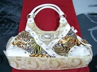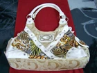 TITLE: SHOULDER BAG PURSE ANIMAL PRINT IVORY BROWN BEIGE DESCRIPTION: 1 POCKET ON EACH OUTSIDE SIDE, 1 WORKING OUTSIDE BACK ZIPPER POCKET, 1 INSIDE ZIPPER POCKET AND 2 CELL PHONE POCKETS. CUSTOM LABEL: TOTE 76