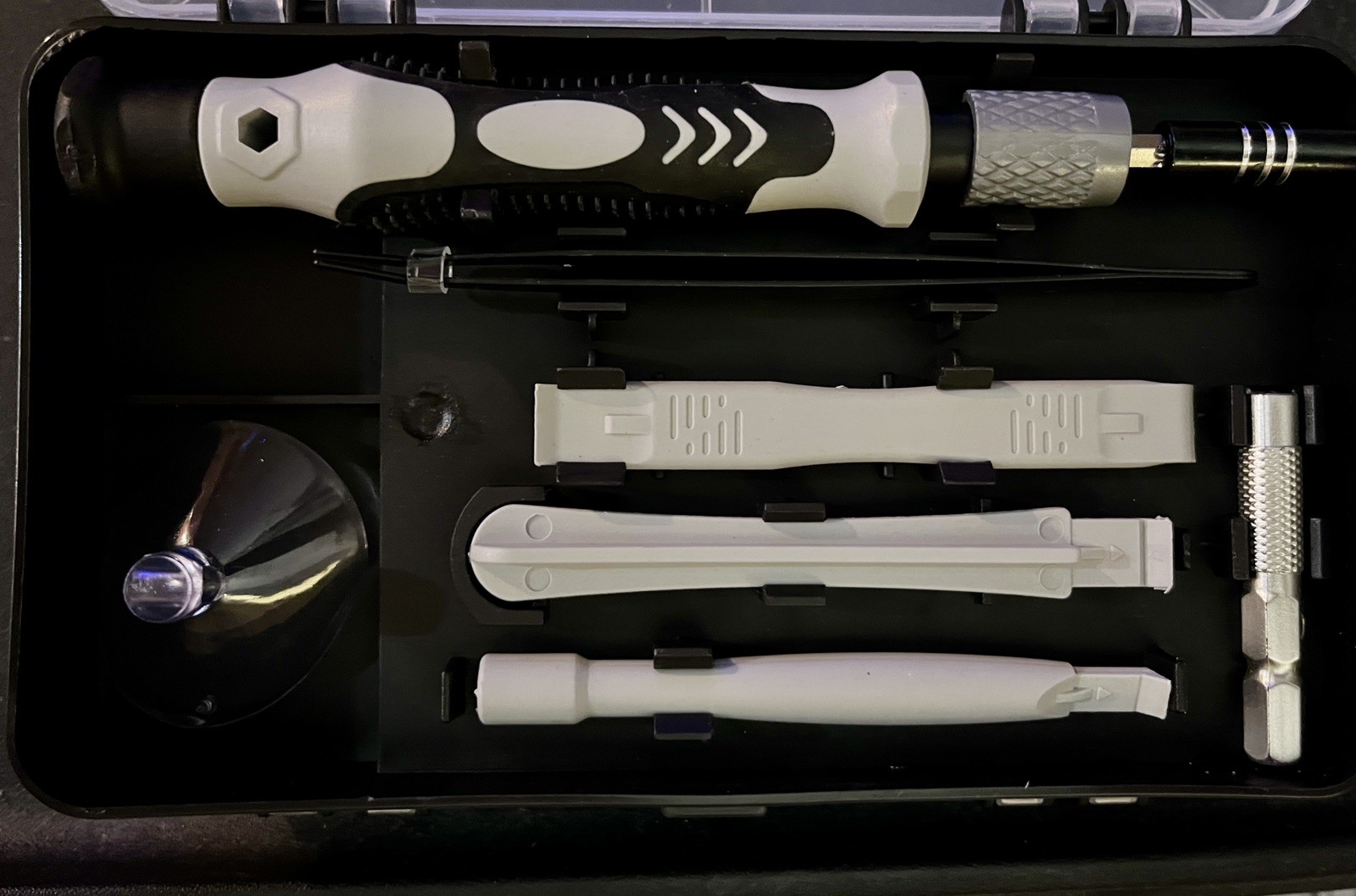 The SHOWPIN 122 in 1 Precision Computer Screwdriver Kit is a versatile tool set designed for computers, laptops, smartphones, tablets, and home appliances. With a 4mm Precision head size and made of Chrome Vanadium Steel, it offers a wide range of screwdriver types including Torx, Hexagon, Schlitz, Phillips, TorxTR, Y-Type, and Pozidriv. The grey color and compact dimensions of 6.3 x 3.54 x 2.36 inches make it convenient for portable use. This kit from SHOWPIN, a trusted brand, has 126 pieces, making it a comprehensive solution for various repair and maintenance tasks.