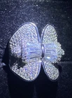 Elevate your style game with this stunning ring featuring a silver filled band and beautiful baguette cut crystals in a bow detail. Perfect for those who love statement pieces, this ring is sure to add a touch of glamour to any outfit. Sized N 1/2, it is suitable for those with smaller fingers. The crystals are created white sapphires, adding an extra touch of elegance to this already exquisite piece of jewellery. Ideal for any occasion, this ring is versatile and can be worn with both casual and formal outfits.