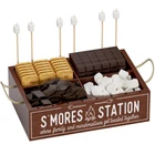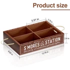S'Mores Station, Farmhouse S'Mores Kit with Handles, Wooden S'Mores Caddy Accessories Organizer, S'Mores Supplies Container Product Details Brand: ART-GIFTREE Material: Pine Material Feature: affordable, lightweight, rustic Product Dimensions: 12.8"L x 8.7"W x 2.8"H Recommended Uses For Product: S'mores making, Entertaining Product Care Instructions: Hand Wash Only Material Features: affordable, lightweight, rustic Is the item dishwasher safe?: No Material Type: Pine Additional Features: Marshmallow bamboo skewers holder with twine handles Container Shape: Rectangular Unit Count: 22.88 Ounce Item Dimensions L x W x H: 12.8"L x 8.7"W x 2.8"H Package Quantity: 1 Manufacturer: ART-GIFTREE Brand Name: ART-GIFTREE Recommended Uses For Product: S'mores making, Entertaining Whats better than a summer night outside? A summer night outside with a smores station! Elevate your gatherings and bring the ultimate campfire experience to your event with our charming and convenient S'mores Station. Our smores station hold all the smores fixings - different kinds of chocolate, graham crackers, marshmallows and anything else you want to add. If you're hosting a party where you want people to be able to choose all of the toppings, then displaying them in this cute tray will work great. The s'mores container box measures approx. 12.8 x 8.6 x 2.8 inches and is designed with four well-sized compartments, each measuring 5.9 x 3.8 x 2.8 inches. Note: Chocolate chip cookies marshmallows, etc. pictured are not included! The rustic s'mores station decor boxhas 16 holes for marshmallow bamboo skewers and comes with twine handles on both sides for easy portability and can be used indoors or outdoors for a variety of events. Our smores station is an easy way to enjoy smores both indoor and outdoors! Perfect for entertainingwedding reception, parties, graduations, BBQ, baby shower or gender reveal and more. Also perfect for giving as a gift at the event above!