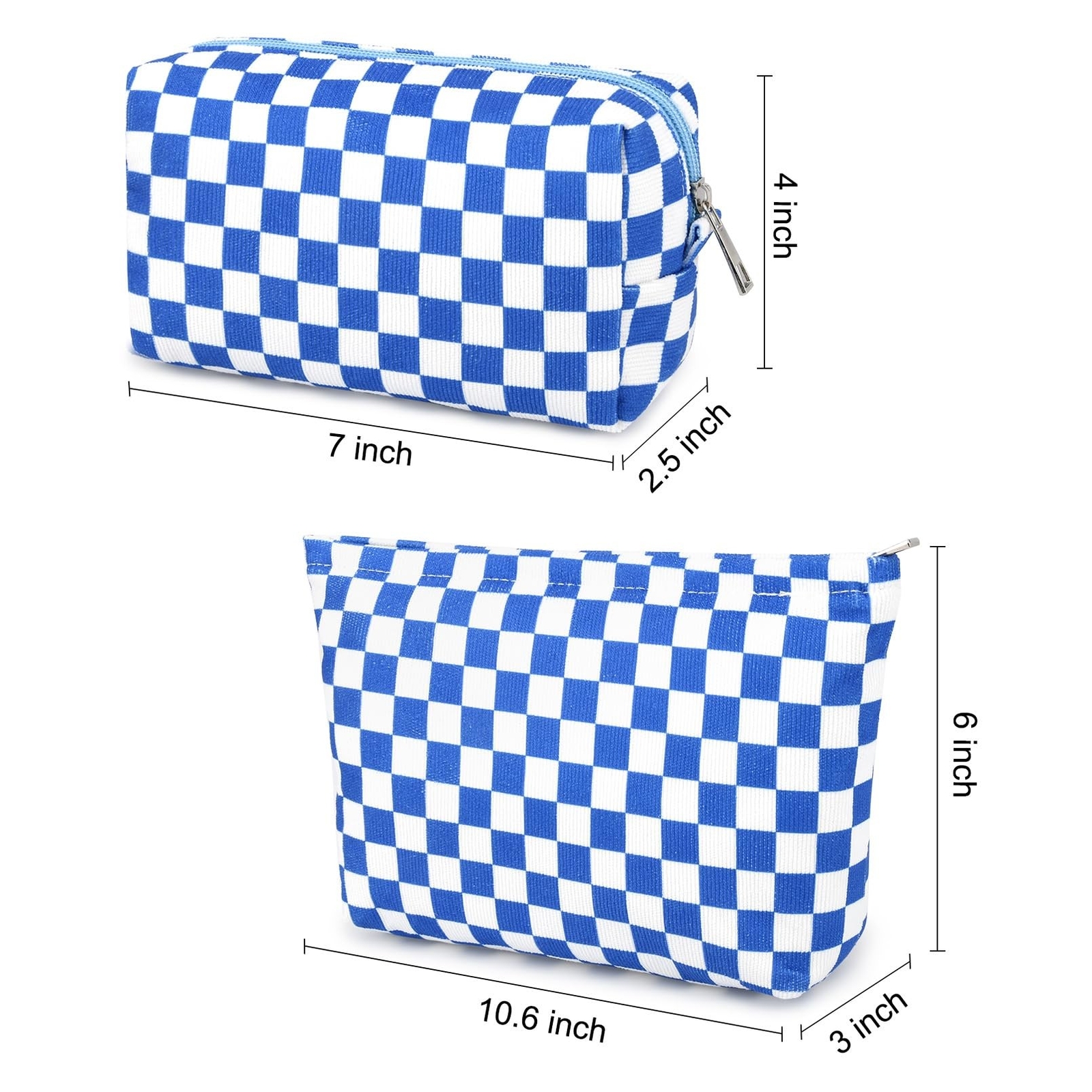 SOIDRAM 2 Pcs Checkered Makeup Bag Large Cosmetic Bag Toiletry Bag Makeup Pouch Travel Bag Organizer Cute Makeup Brushes Aesthetic Accessories Storage Bag for Women Royal Blue Product Details Color: Royal Blue Brand: SOIDRAM MPN: Royal Blue UPC: Does not apply EAN: Does not apply Product Dimensions: 11 x 3 x 6 inches Item Weight: 5.9 ounces Department: Women Manufacturer: SOIDRAM Country of Origin: China Item model number: Royal Blue Perfect Size and Large Capacity-- It measures 11 6 inches/7 4 inches. Portable and large capacity.It is easy to store small items, makeup brush, etc, to make your daily make-up, eyebrows, eyeliner, cream, lipstick, perfume and other beauty things organized and protected. Fashion Design-- You will get 2 pack Royal Blue checkered make up bag in total, distinctive pattern design and color matching, original and always popular, ideal for carrying and using during your travels Quick Selection-- The makeup storage bag with metal zipper pulls keep your items safe and organized, after unzipping, all items can be seen at a glance, and can be selected quickly, no need to dump and search like traditional cosmetic bags Portable -- SOIDRAM large cosmetic bag is Portable and Lightweight,very suitable for storage of cosmetics in suitcase and easy to carry when traveling or on bussiness.