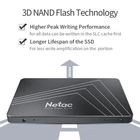 Netac 256GB SSD 2.5'' SATA3.0 III Internal Solid State Drive 500MB/S PC/MAC/Laptop Feature Incredible Performance:Read speeds up to 500MB/s. Superfast data Transfer and read speed (Write speed lowers.) accelerated by 3D NAND technology. Tested by CyrstalDiskMark software and test platform configuration is Intel Core I7 5820K / ASUS X99-A USB3.1 / G.SKILL DDR4 2800MHz. (Based on internal testing, performance may be some difference in terms of drive capacity, host device, usage conditions, and other factors.) With capacities up to 256GB, Netac internal SSD has enough space for digital content. Ideal for transferring large-sized data including 4K videos, high-resolution photos, games and more. Trim,LDPC, Wear leveling: Netac internal solid state drive fully optimizes its GC (garbage collection) process. Keep itself in the best working state for a long time. And advanced LDPC error correction technology effectively improves service life. So as to extend the service life, error correction algorithm makes data storage even longer. The unique wear-leveling technology of Netac SSD makes the particle P/E (erase / write) loss more even to prolong its life. Rugged & anti-impact: Netac internal SSD supports shock-resistant solid state core, and it makes Netac's solid state resistant to shock and vibration. Storage temperature is from -40°C to -85°C and operating temperature is from 0°C to 70°C. Voltage Ambient humidity (non-condensing) is from 5% to 95% . Reliable and Durable! Netac is the brand that worth counting on. Compatibility & Experience: For replacement of hard drive in both MAC and PC systems, Netac internal solid state drive is your ideal and appropriate solution. With Netac SSD performance in your PC, you can upgrade laptop / desktop computer directly to enjoy super-fast OS Boot-up, application loads, terabyte-level storage, trusted reliability and the like. With Netac's SSD, keep making your personal computer feel like new. Product Specification Brand: Netac Product capacity:256GB Interface: SATAIII 6Gb/s. Compatible with SATA 3.0 devices. Backwards compatibility with SATA 2.0 devices. Form factors: 2.5 inch Read Speed: Up to 500MB/s Write Speed: Up to 450MB/s Material: Plastic Flash category: 3D Nand Flash Storage temperature: -40 ° C-85 ° C Voltage Ambient humidity (non-condensing): 5% -95% Operating temperature: 0-70 ° C TRIM: Support (Requires system support) S.M.A.R.TZ: Support Voltage: 5V N oiseless, Heatless, Energy Efficiency,10x faster than a hard drive,Faster load times in games.Reliable and Durable. P ackage include: Netac 256GB internal SSD * 1 *Note : New and old packages are shipped randomly. The packaging cannot be specified. * Notice : One Gigabyte (1GB) means 10^9 = 1,000,000,000 bytes using powers of 10. A computer operating system, however, reports storage capacity using powers of 2 for the definition of 1GB= 2^30 = 1,073,741,824 bytes and therefore shows less storage capacity,about 90%. Available storage capacity (including examples of various media files) will vary based on file size, formatting, settings, software and operating system and other factors.