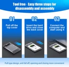 SSD HDD Hard Drive 2.5" inch SATA III USB 3.0 Enclosure Connect any 2.5'' Serial ATA (SATA) or SATA II Hard Drive to your computer through an available USB 3 port on your desktop or laptop. FEATURES: Supports Standard Notebook 2.5" SATA and SATA II Hard drives. Transfer Rates Up to 5 Gbps when using USB 3. Hot-swappable, plug and play, no drivers needed. Backwards-Compatible with USB 2.0 or 1.1. It is not suitable for 3.5” HDD. Reverse compatible with USB 2.0 and 1.1. This enclosure is a perfect solution for data transfers and data backup. SYSTEM REQUIREMENTS: Available USB 3.0 / USB 2.0 Windows 11 Windows 10 Windows 8.1/8 Windows 7 Windows Vista Windows XP Linux 2.4 or Above Mac OS 8.6 or Above WHAT'S IN THE BOX? Hard Drive Enclosure. USB 3.0 cable. Super-speed transmission rate of up to 5Gbps. Backward compatible with USB 2.0 or 1.1. Lightweight, high-quality portable SSD storage. Easy installation and use of SSD/HDD enclosure. Innovative tool-free design with an LED indicator. Plug and play, no need to reboot the machine.
