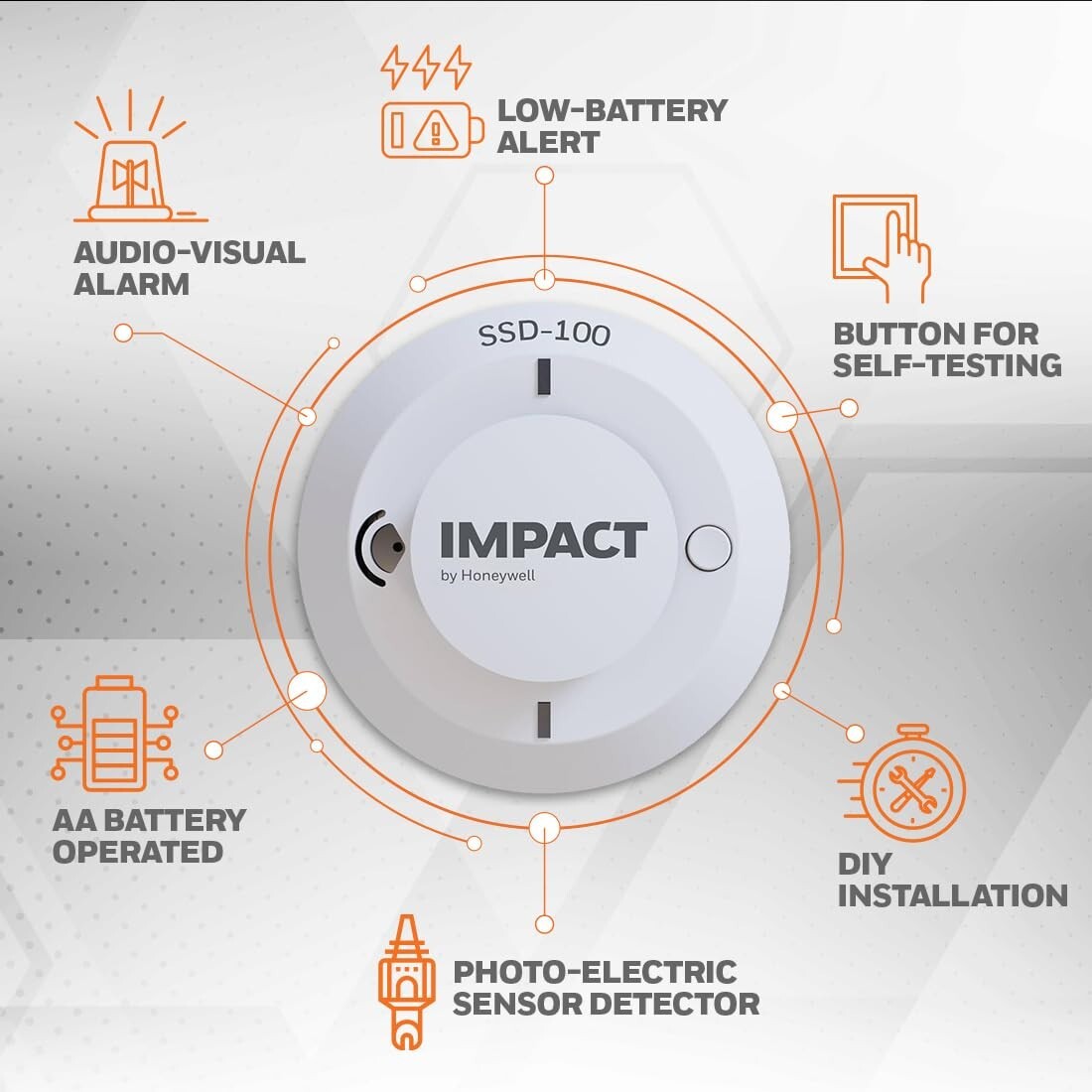 Protect your home or office with the Honeywell SSD-100 IMPACT, a reliable standalone smoke detector that operates on battery power. This model is designed for ease of use and installation, providing a proactive measure against smoke buildup. The sleek design ensures it will fit seamlessly into any decor while offering a constant reminder of the safety measures in place. Featuring advanced technology synonymous with the Honeywell brand, this smoke detector is a must-have for any space requiring dependable fire detection. The intuitive design ensures that maintenance is minimal while providing optimal performance. In the event of a smoke buildup, the Honeywell SSD-100 will promptly alert you, allowing for immediate action.